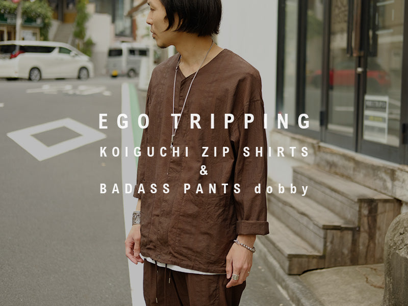 EGO TRIPPINGではここ数年定番的にリリースされているKOIKUCHI ZIP SHIRTSを、今回はセットアップで提案。