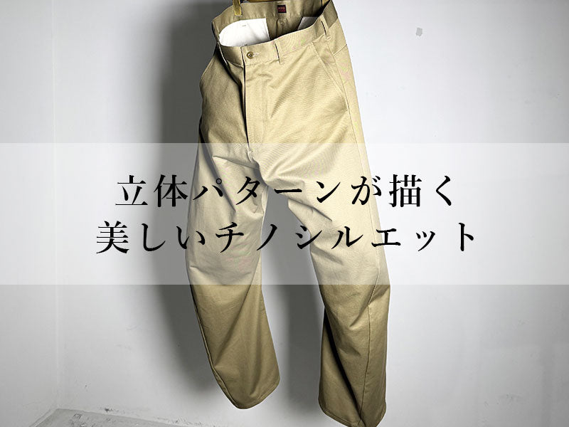 直線的なシルエットのチノパンとは一線を画し、動きやすさと存在感を両立している点が魅力です。