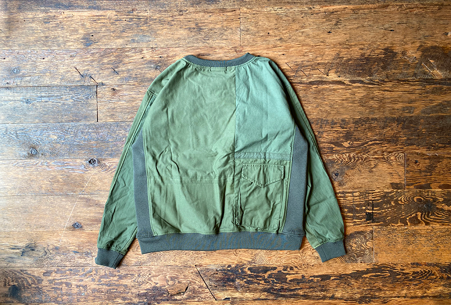 M-65フィールドジャケットを解体し、リバースウィーブを元にしたプルオーバーに再構築。