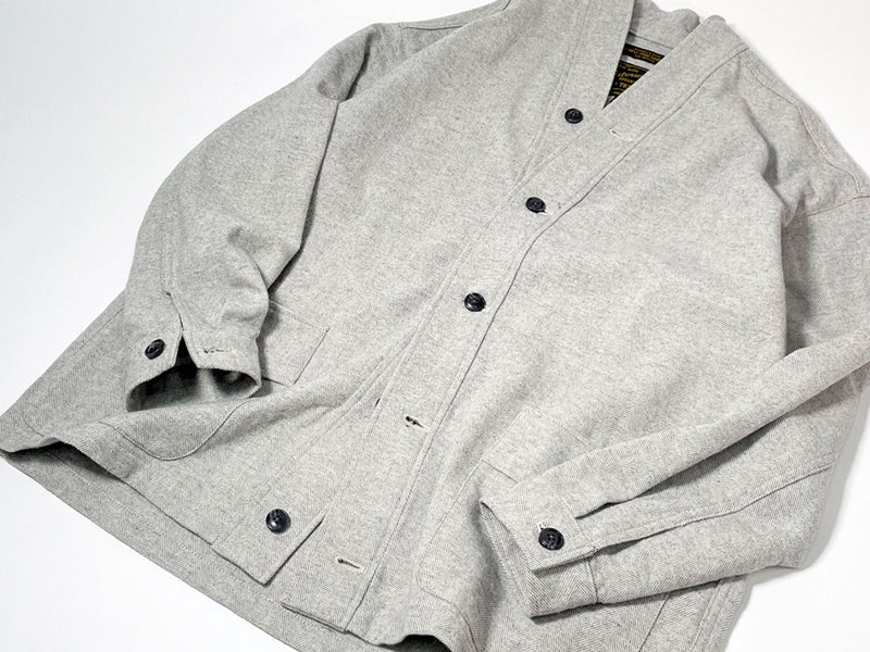 40年代のスウェットカーディガンをベースに襟を和モノのキモノカラーにアレンジした逸品。