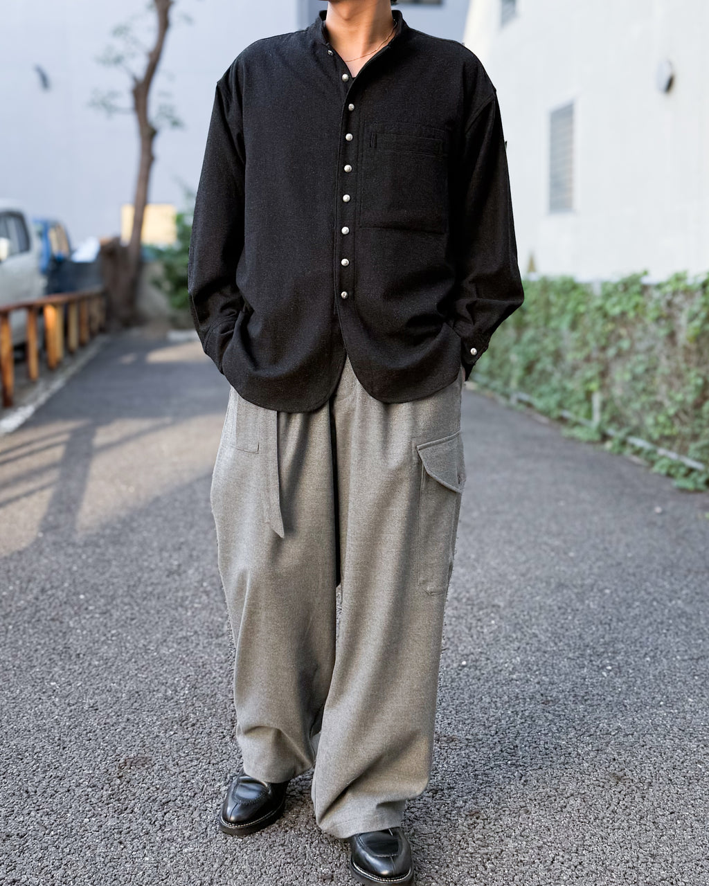 デザイン性と実用性を高次元で融合させたこのシャツは、カジュアルなデニムと合わせればリラックス感のある休日スタイルに、きれいめのパンツと合わせればオフィスカジュアルとしても活躍する汎用性の高さも魅力です。