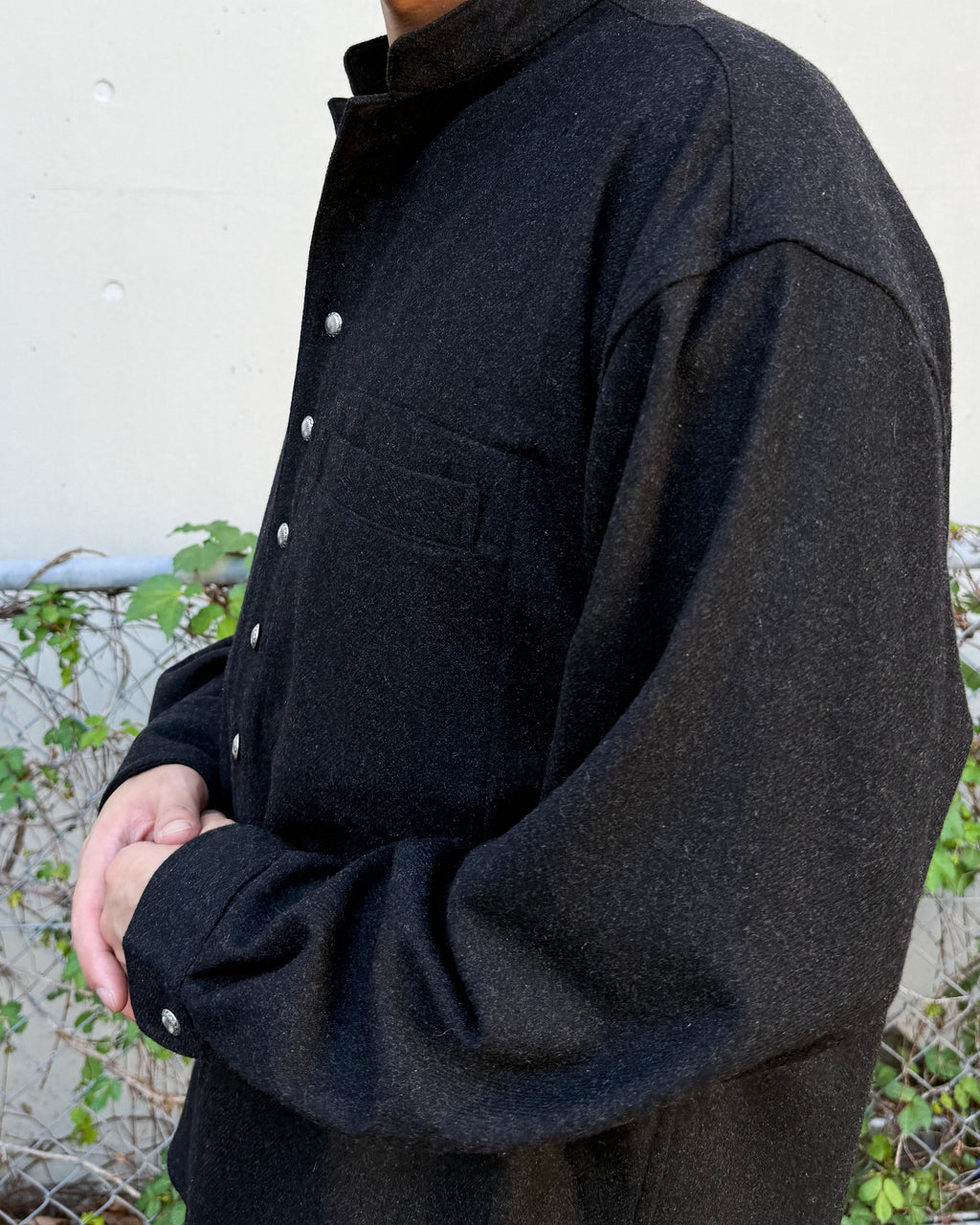 古い時代のボージョンジャケットからインスピレーションを得た独創的なディテール。特徴的なポケットデザイン、裾の美しいカーブ、そして密度高めの存在感のあるメタルボタンが、