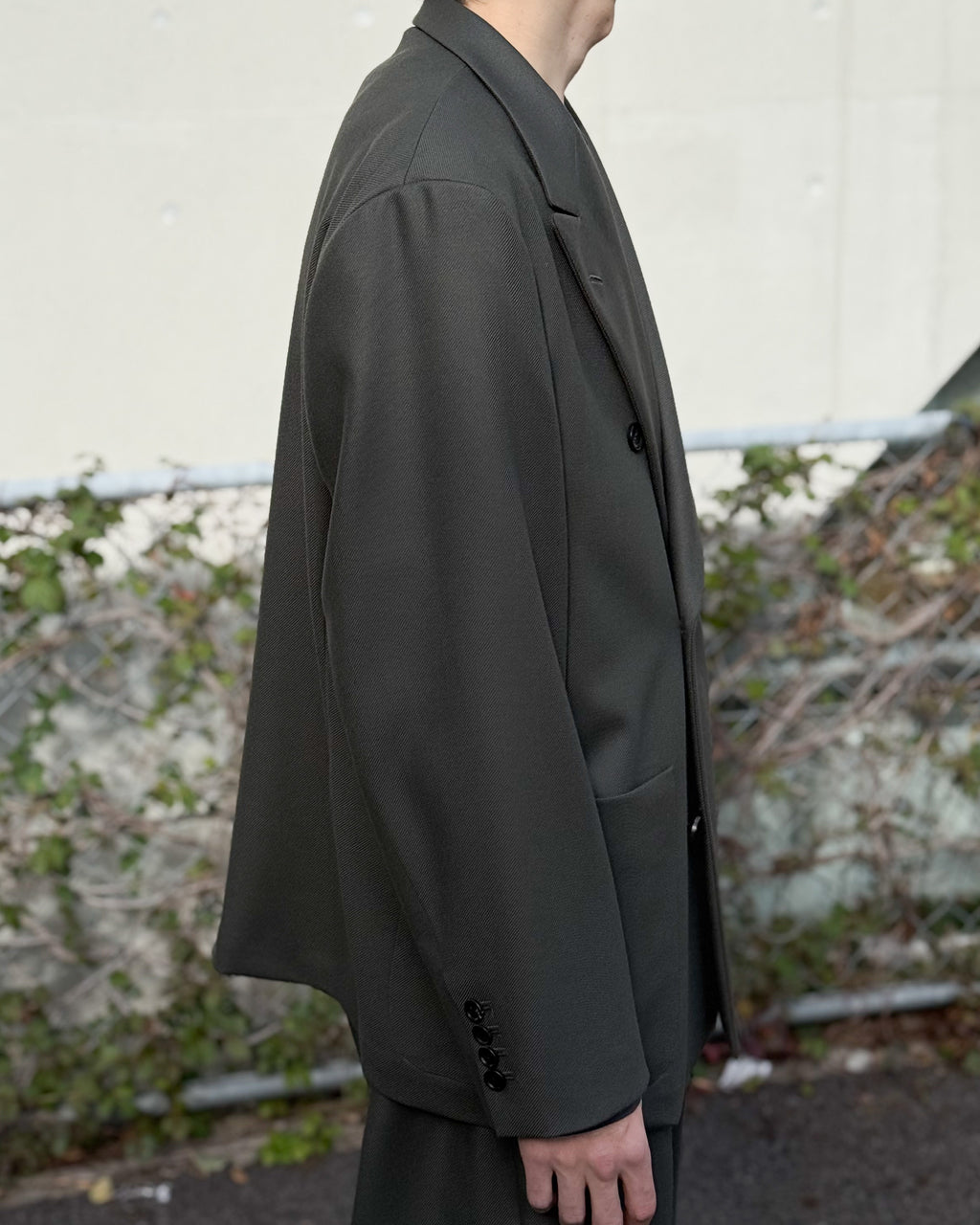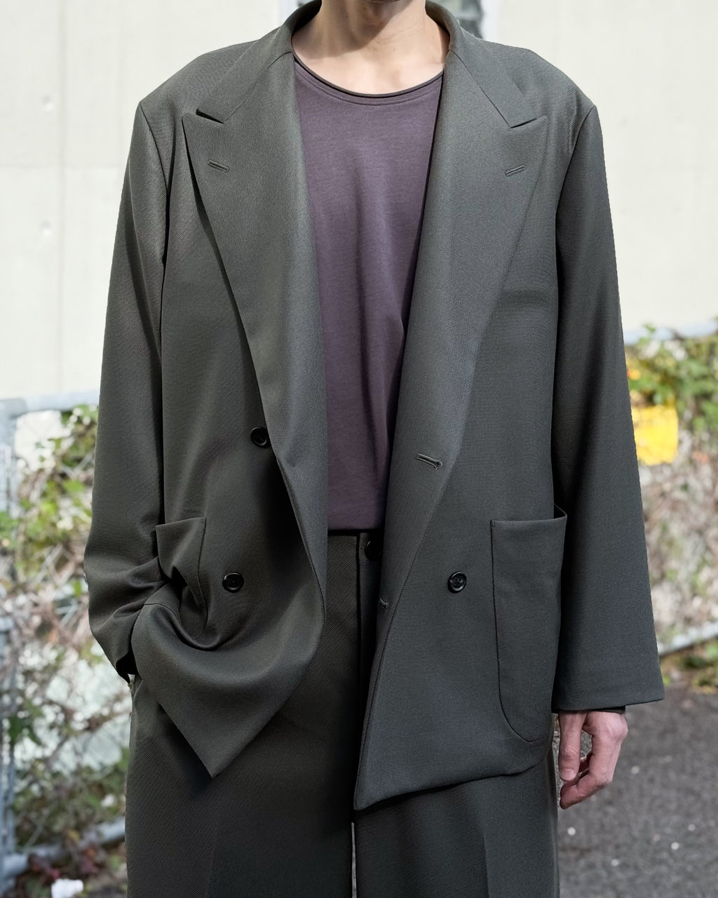 本モデルはジャケットとトラウザーズを組み合わせたセットアップ仕様です。