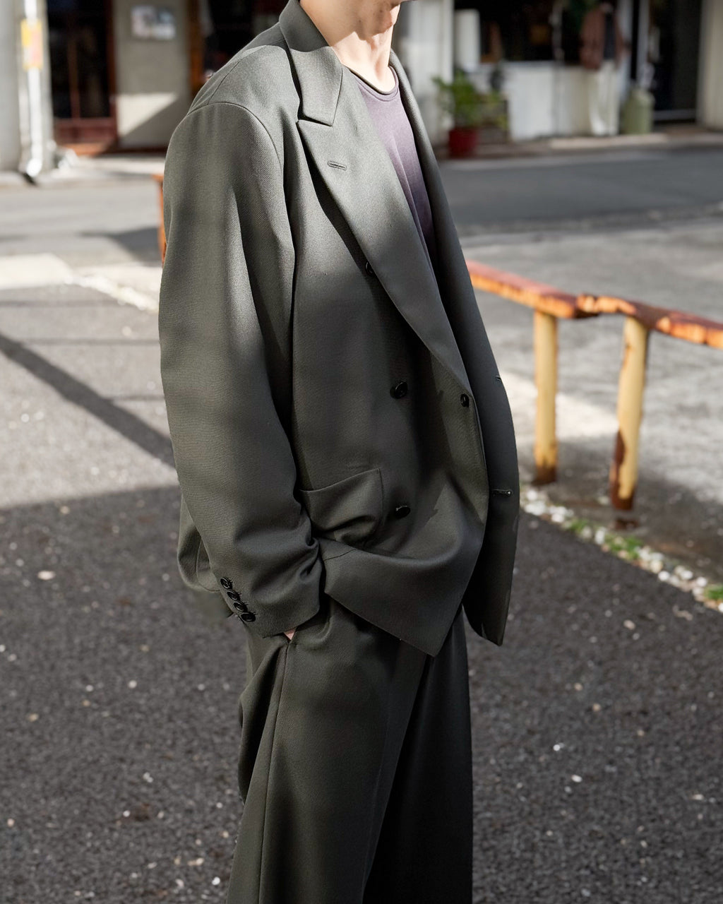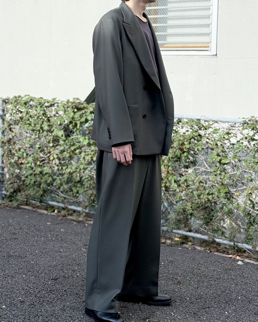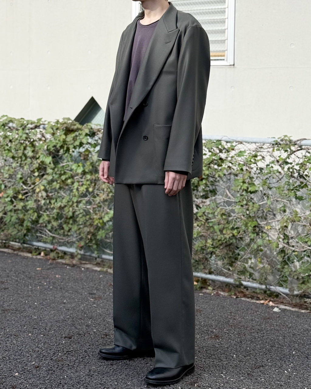 ボトムはダブルプリーツ仕様で、裾に向かってきれいにテーパードを効かせた設計。