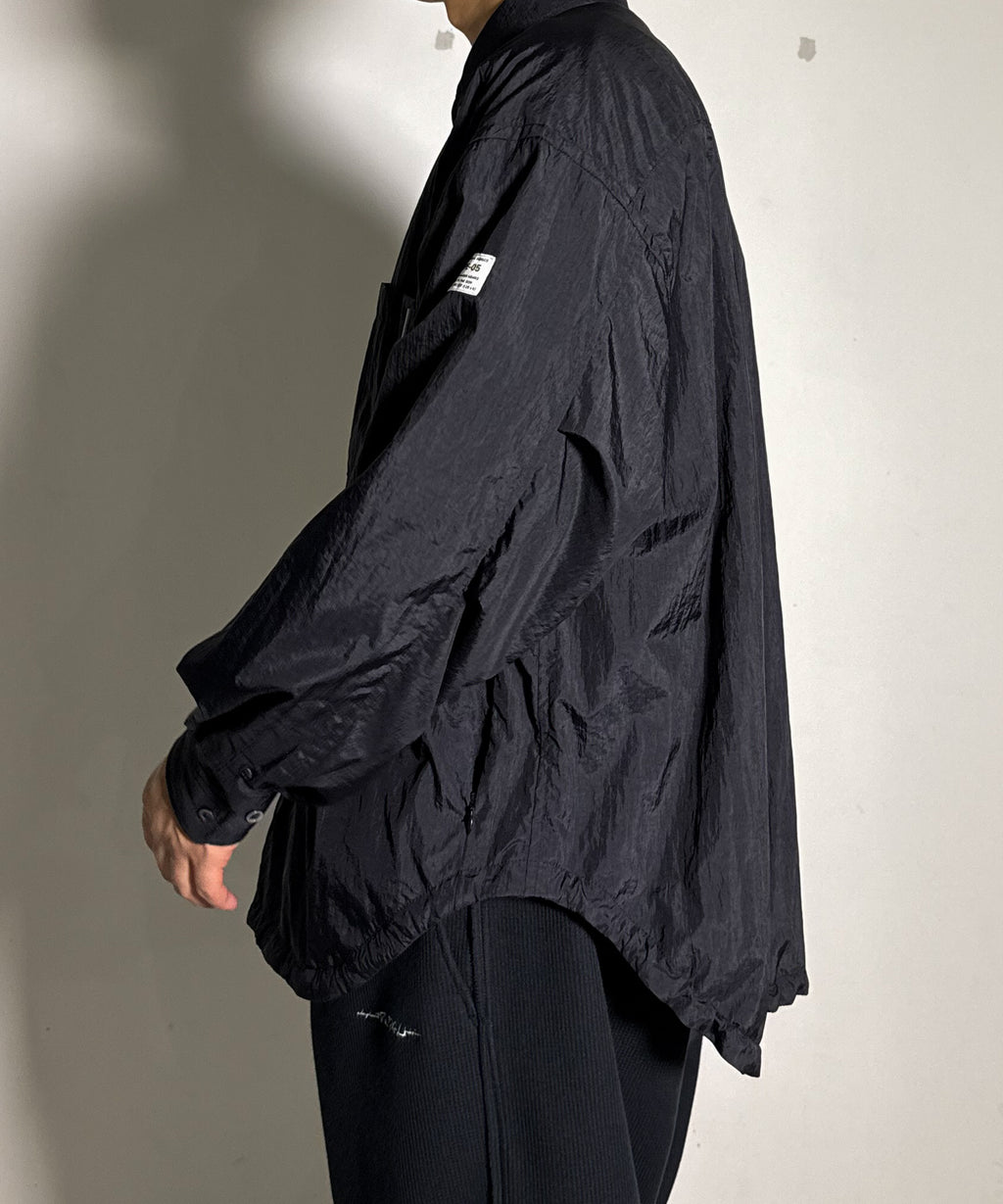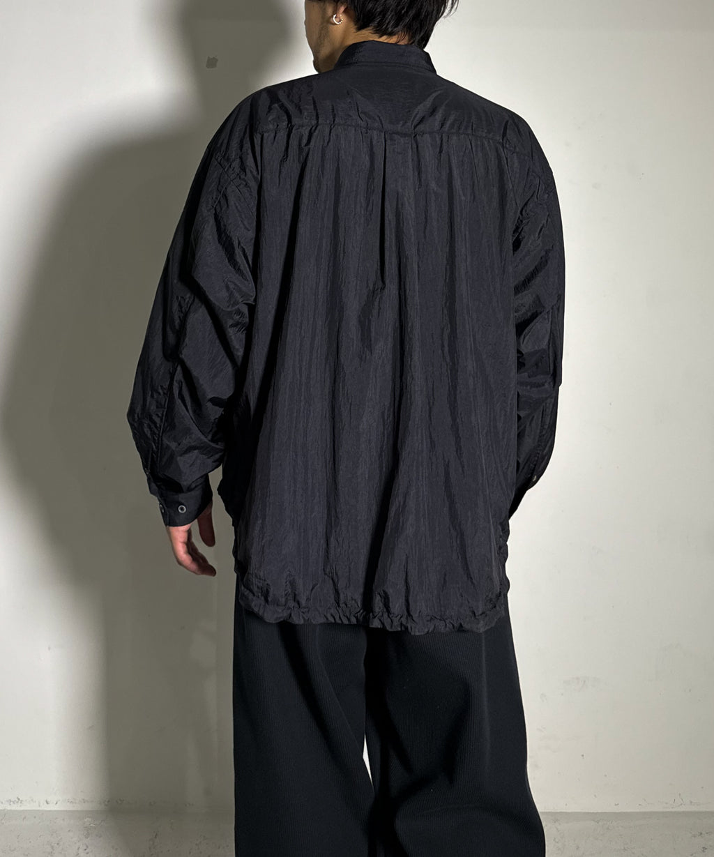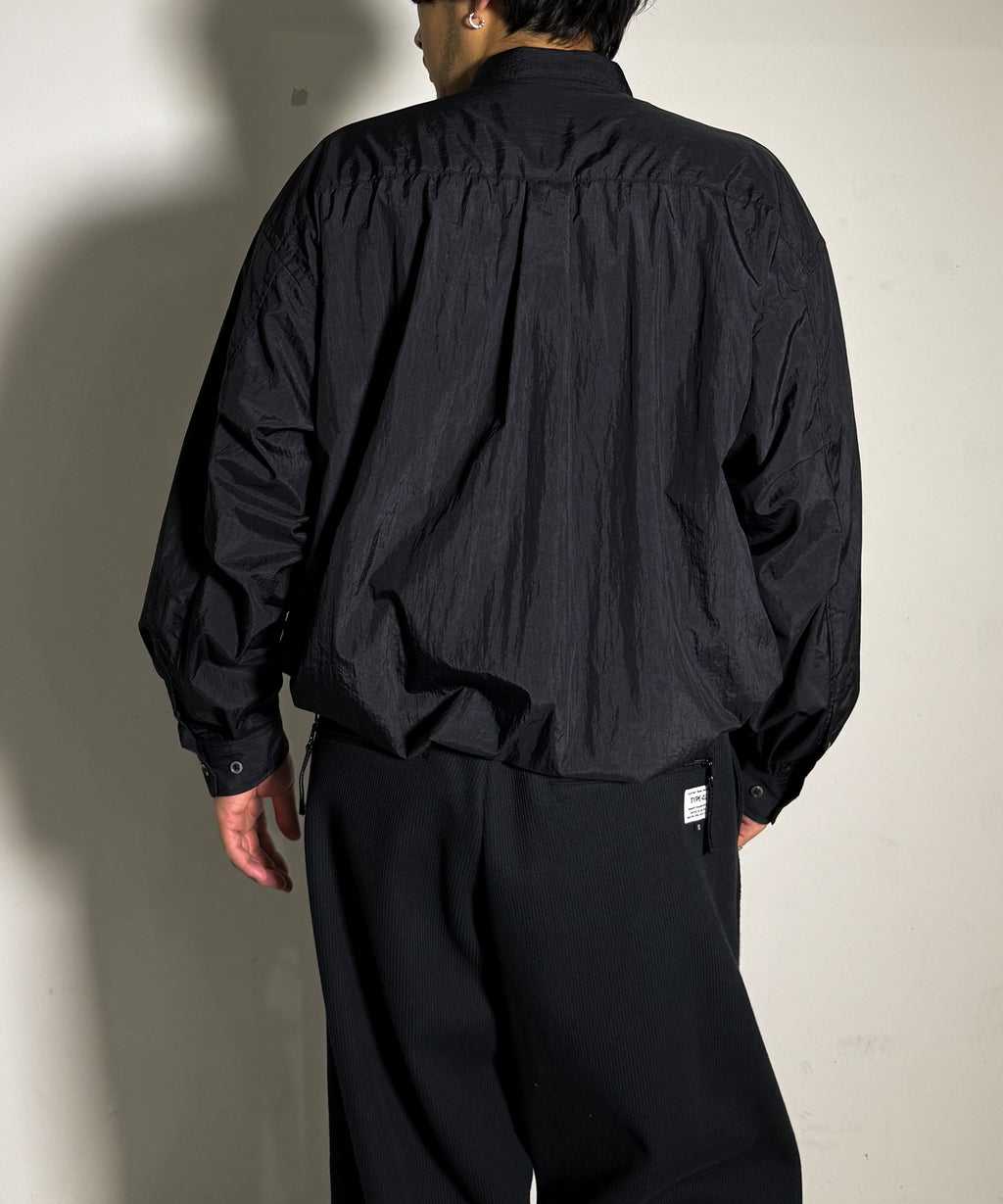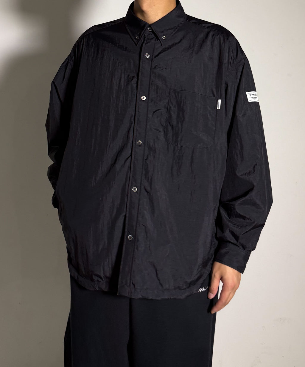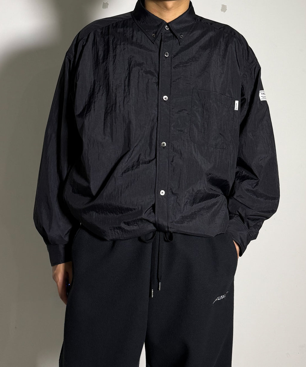 撥水機能のあるワッシャーナイロン生地を使用した超ワイドシルエットのボタンダウンシャツ。