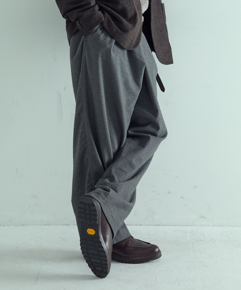 春夏シーズンに大好評を博したトラウザーズの進化系として、秋冬の装いに対応すべく生まれた1着です。