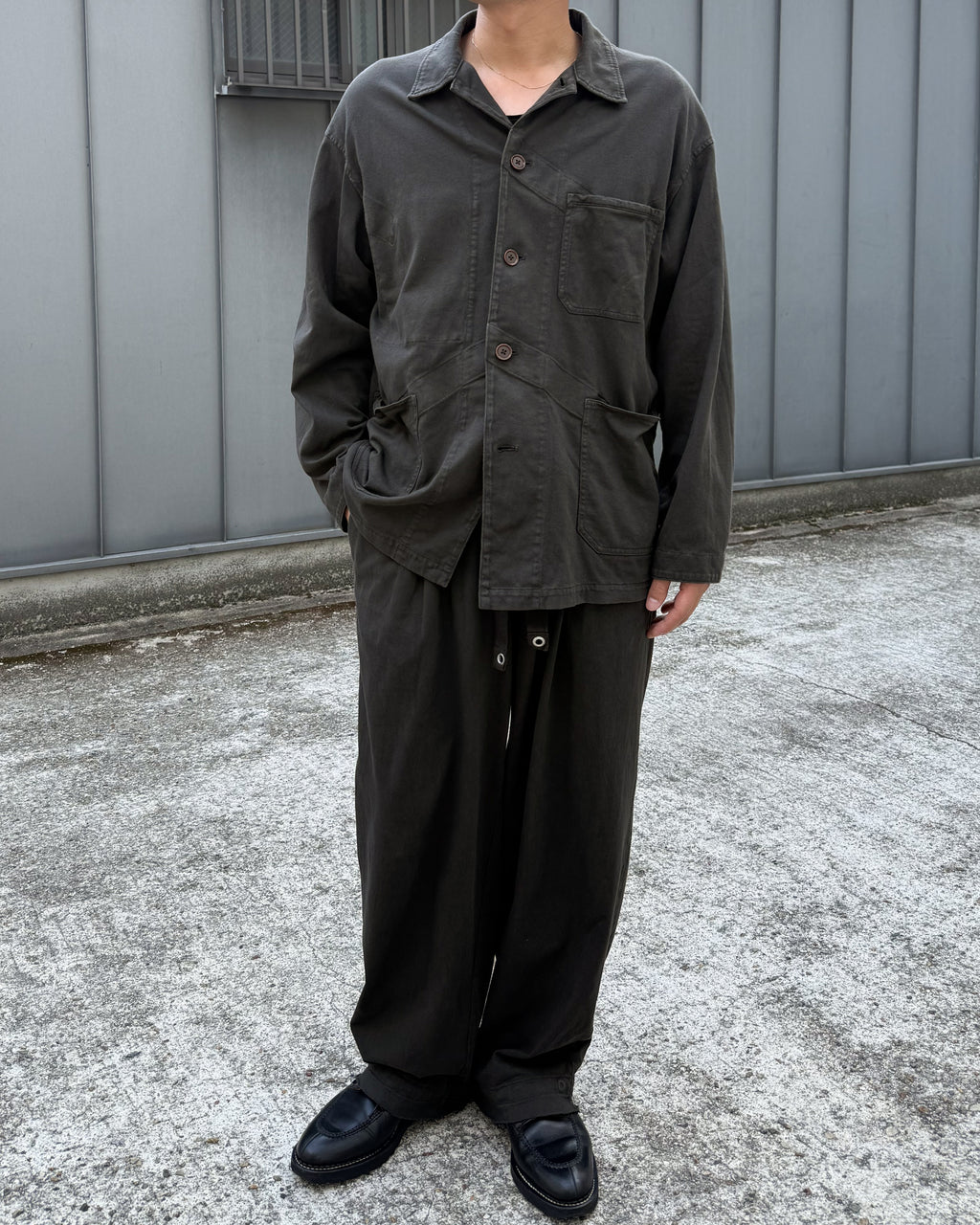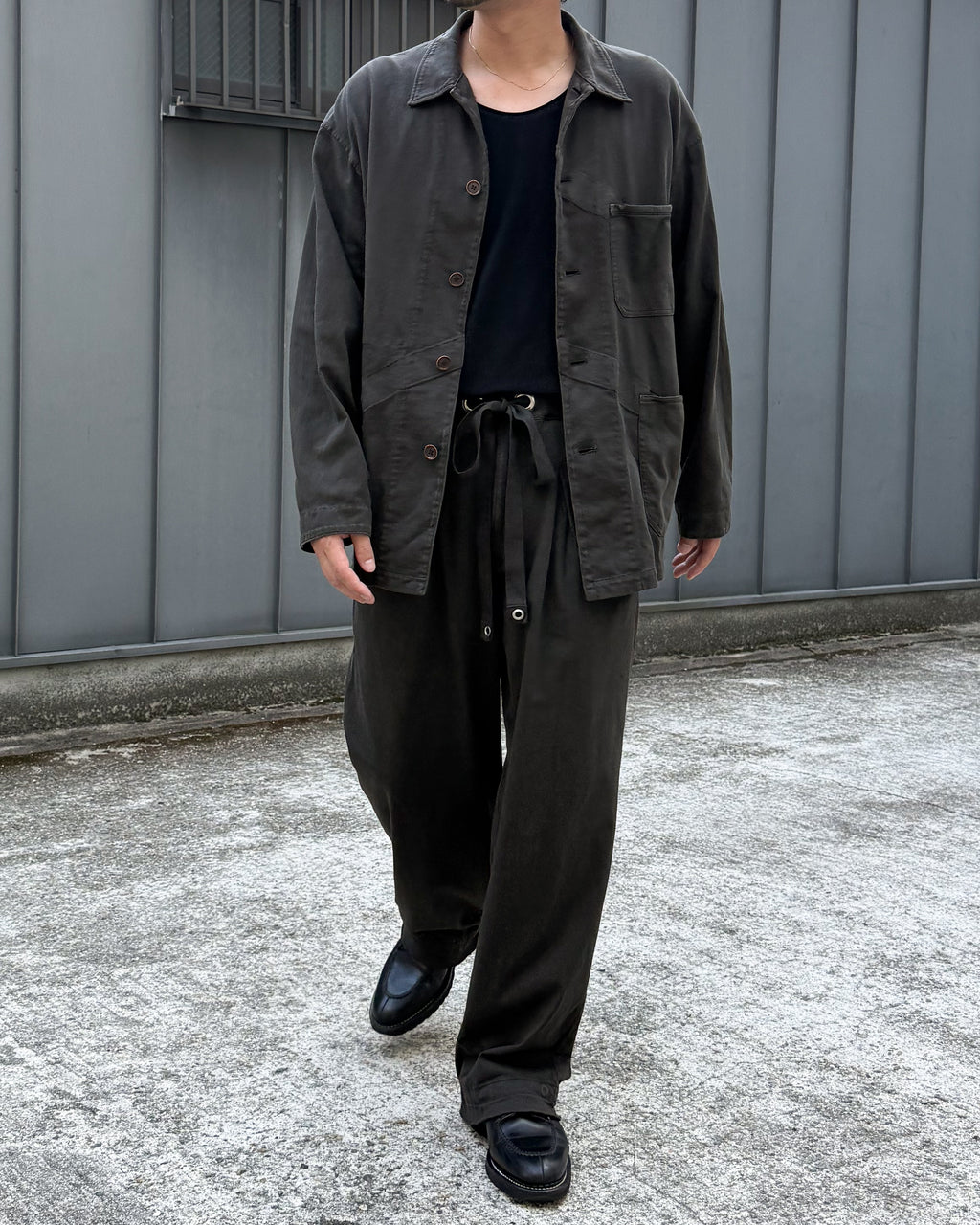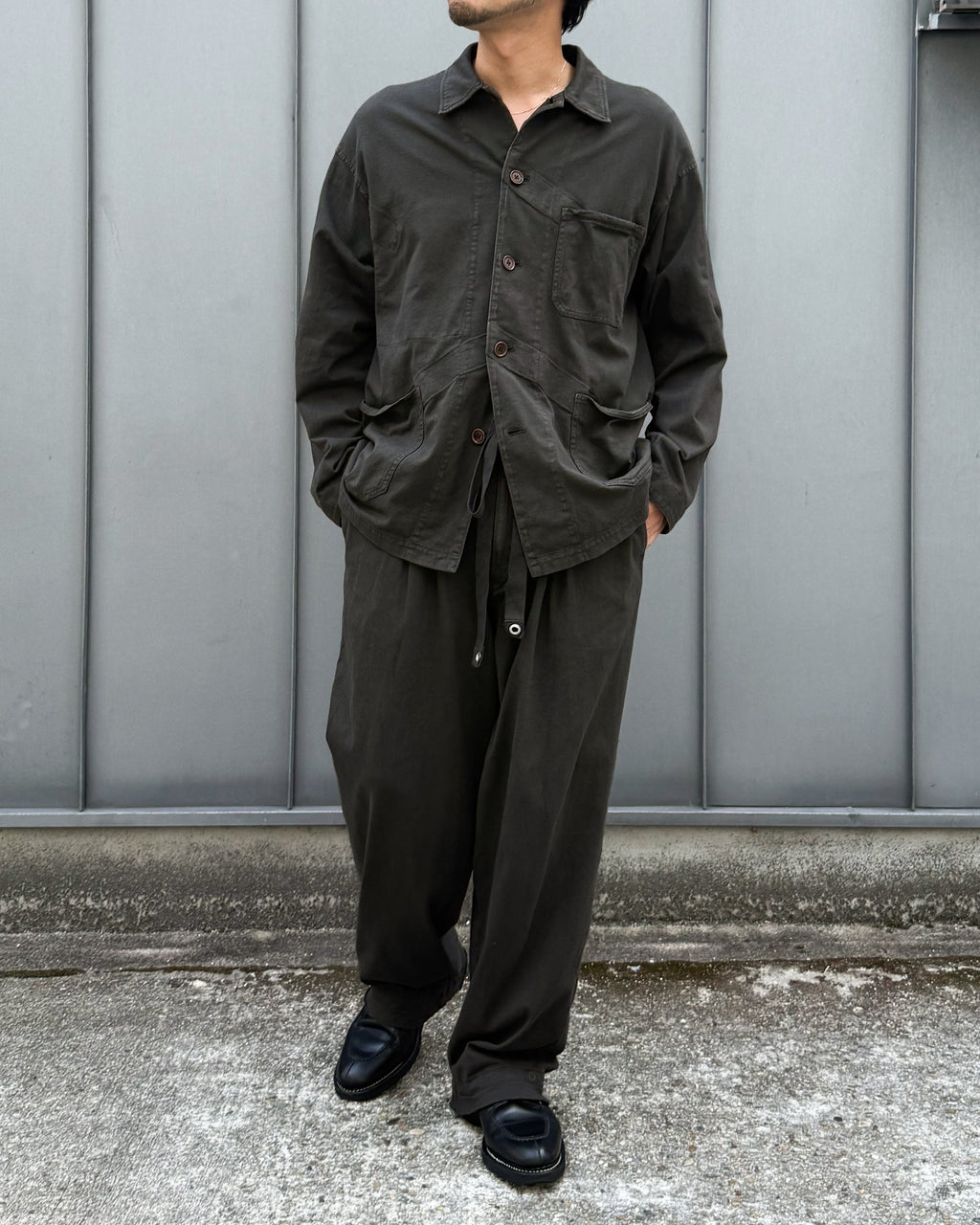 落ち感のあるモダンさを持たせたカットソーカバーオールに仕上がっています。