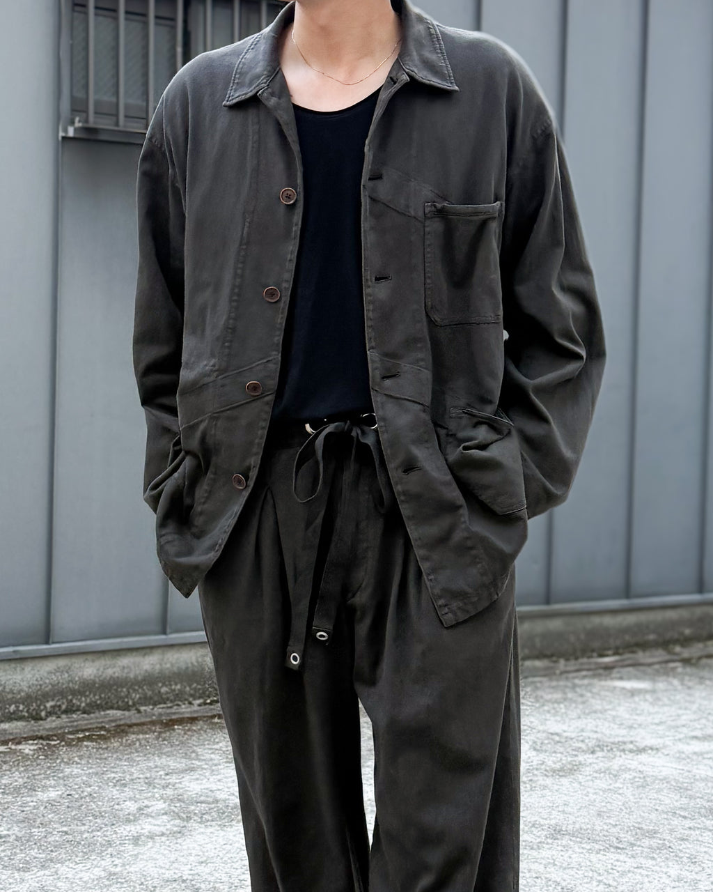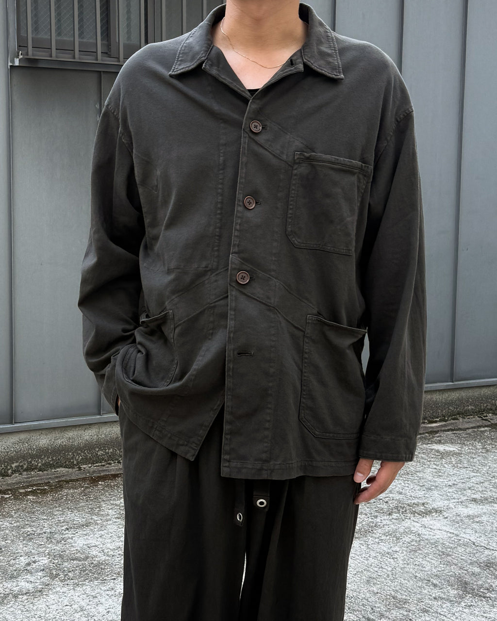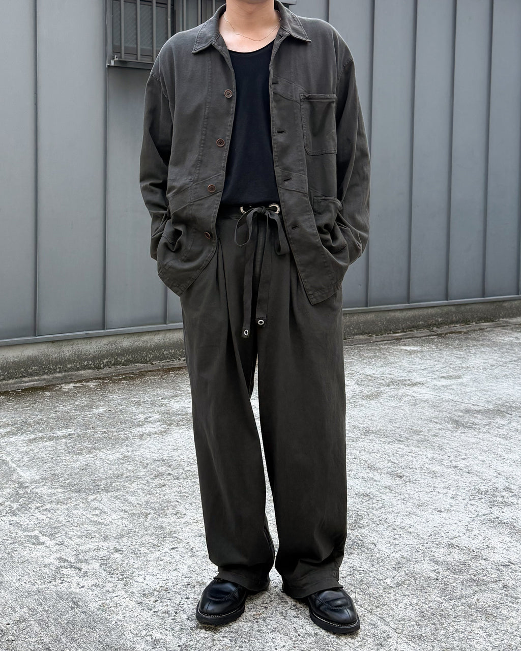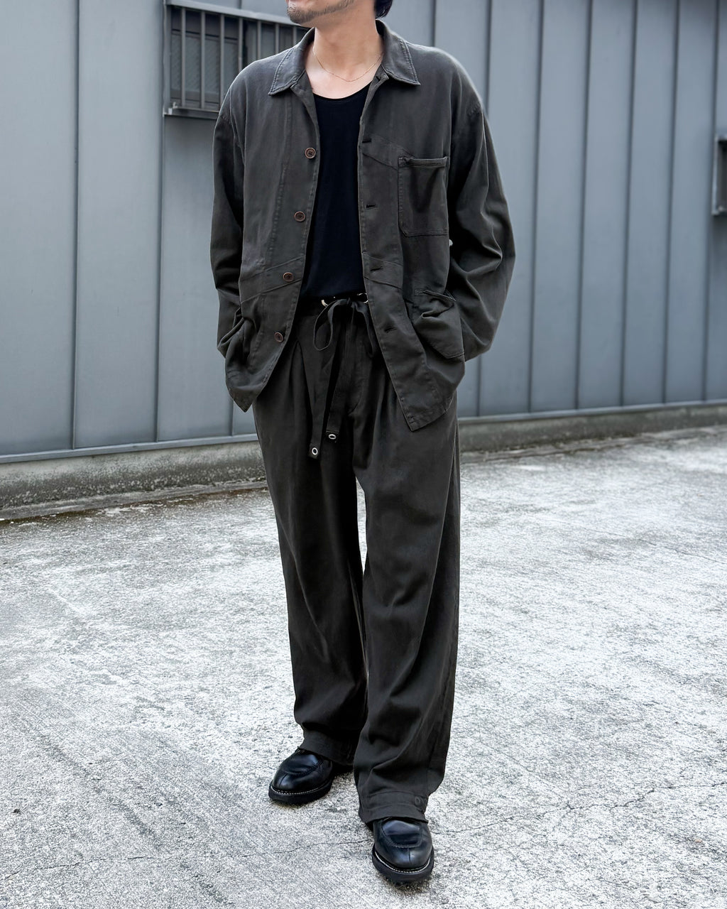 落ち感のあるモダンさを持たせたカットソーカバーオールに仕上がっています。