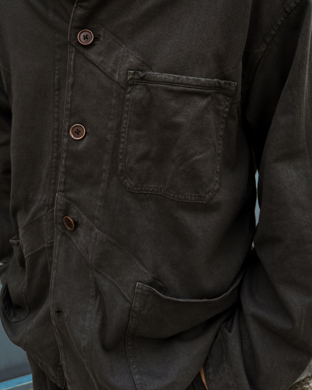 古い時代の直染めによる染色で、ナチュラルな色落ち感とアタリ感を出しています。