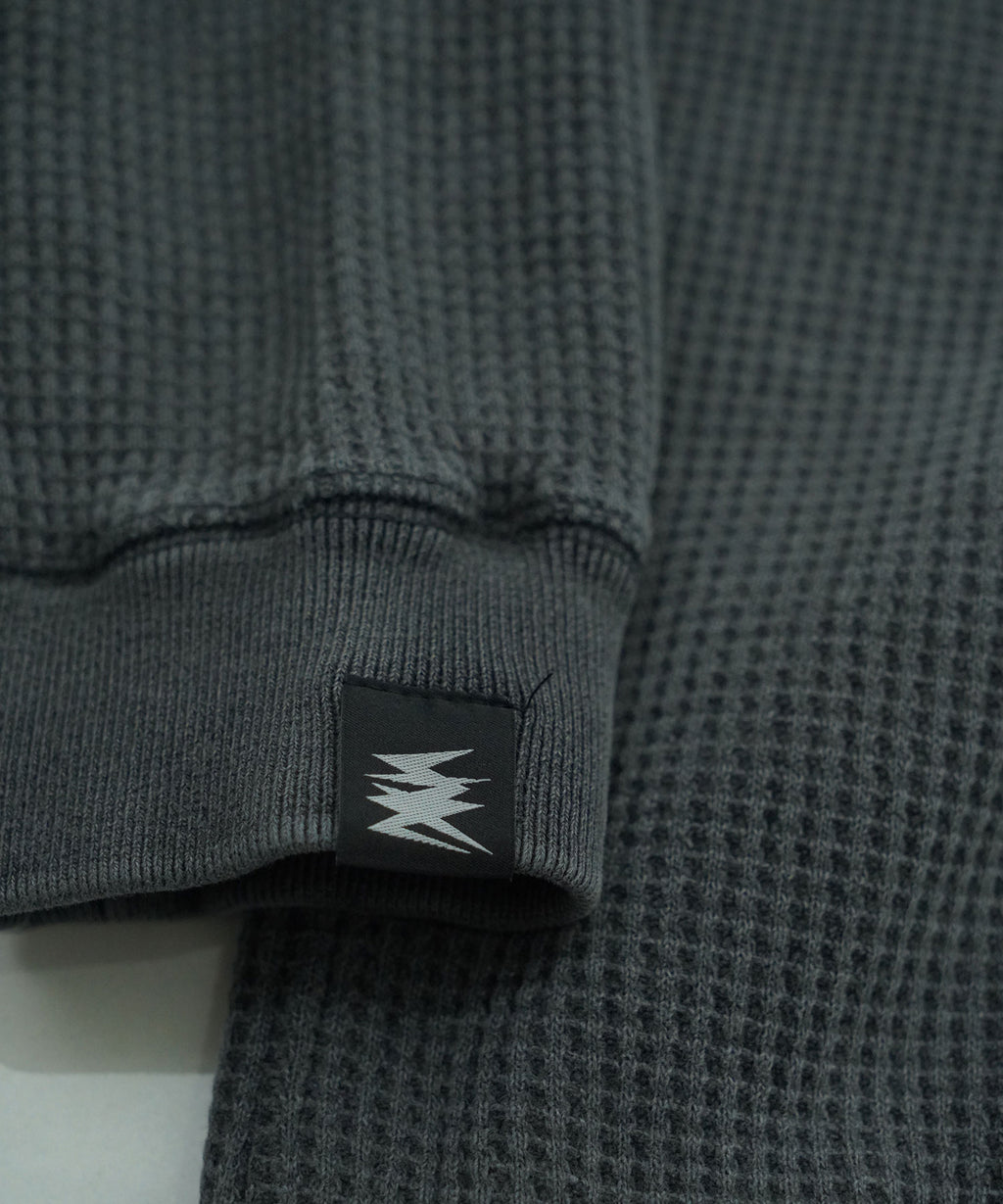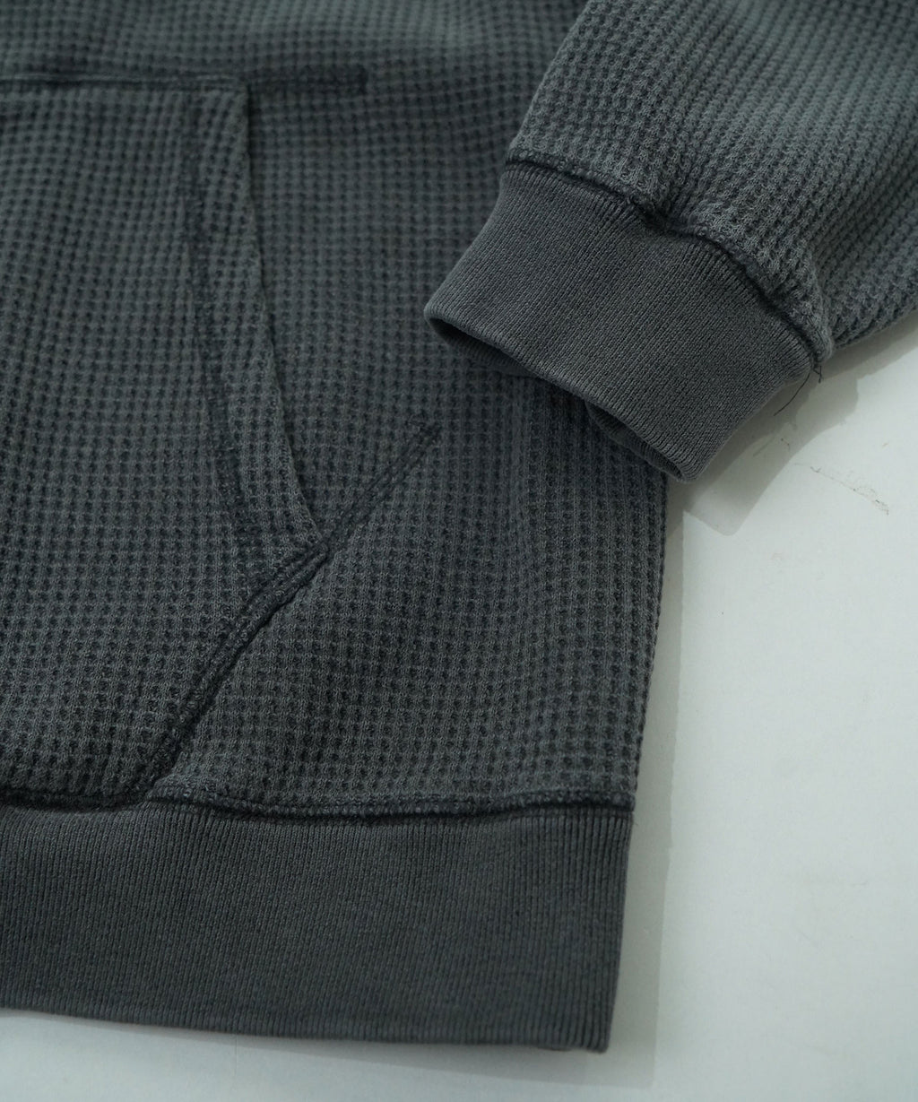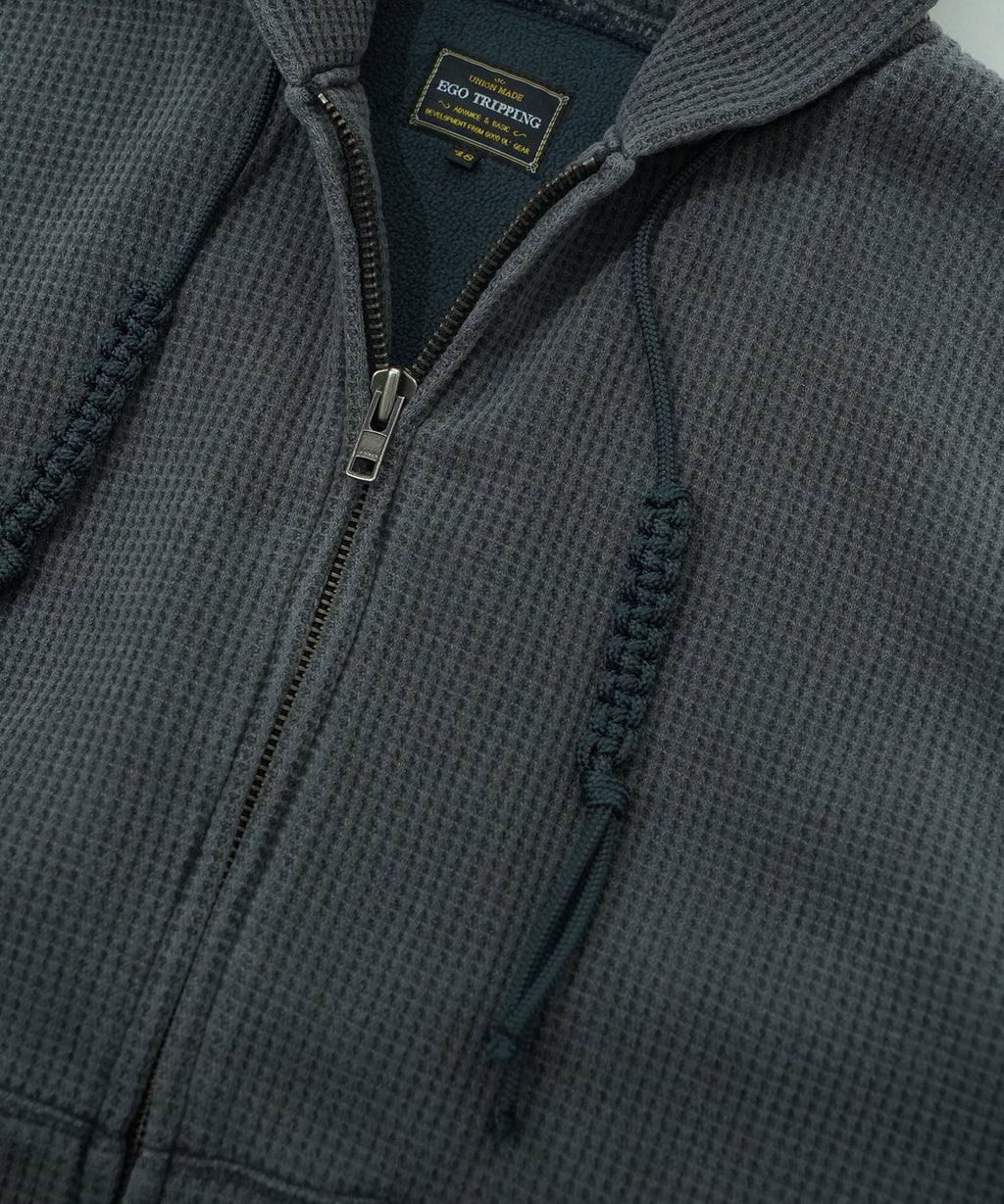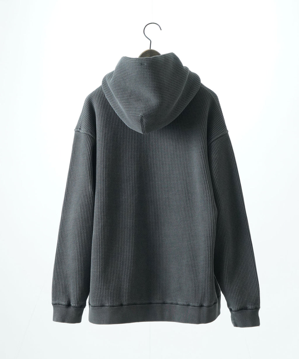 最大の特徴は、重厚感のあるヘビーオンスワッフル生地の裏側に、フェイクファーをボンディングするという革新的な素材構造。
