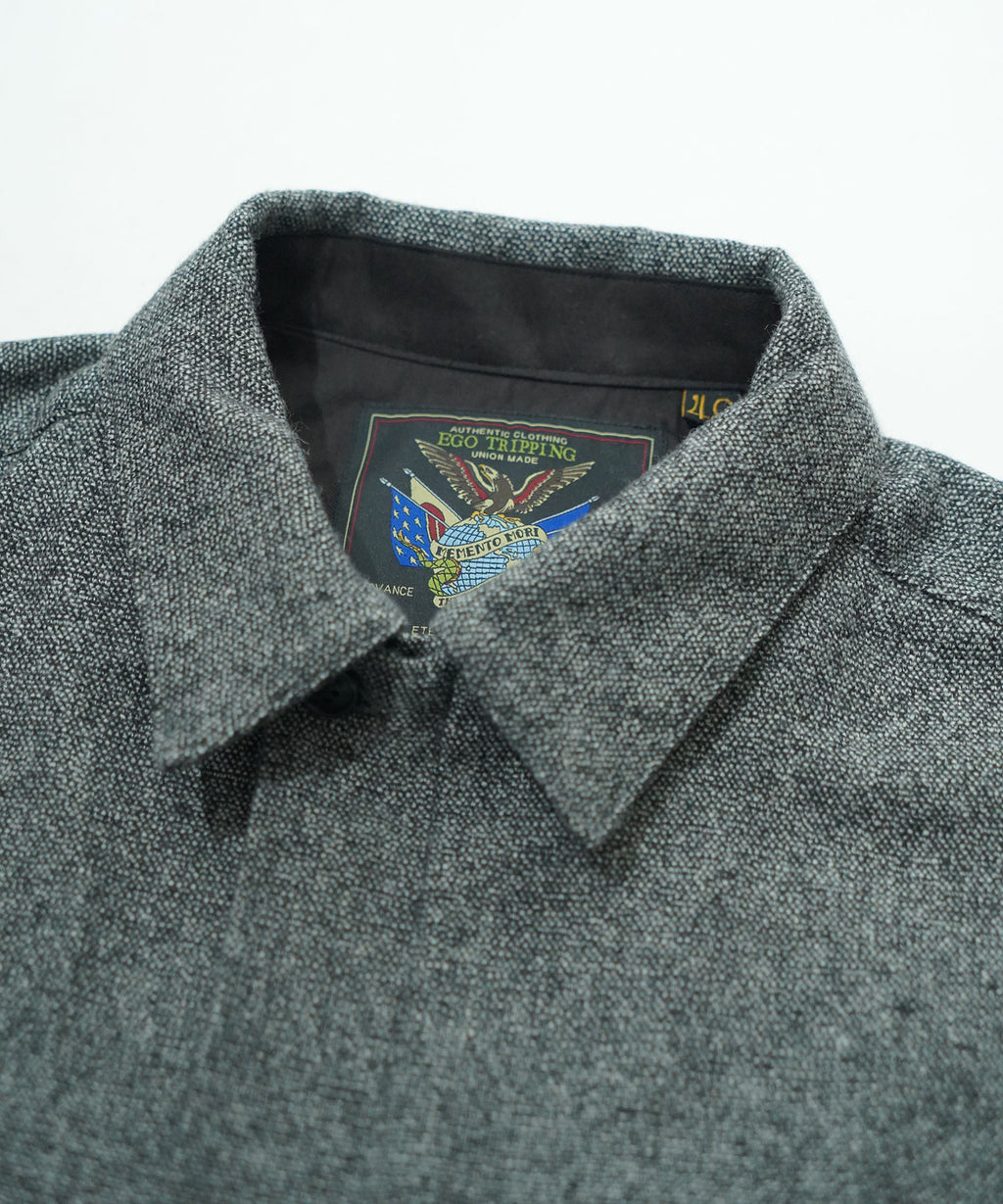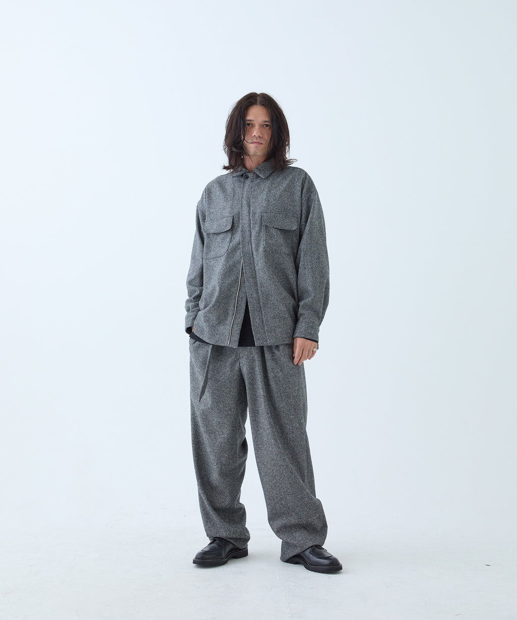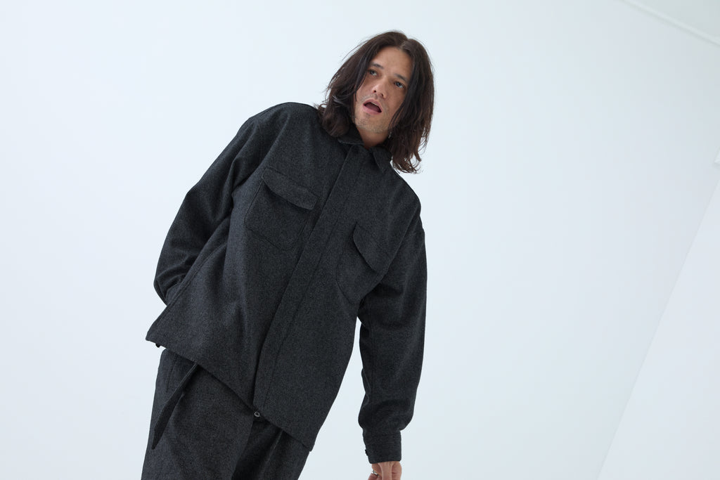 ここ最近のマイブームのセットアップへの強い思いから生まれたウールのオーバーシャツセットアップは、シャツと軽アウターの間に位置する新しいスタイルの提案です。EGOTRIPPINGでは珍しいウール素材のセットアップとして、これまでの薄手の展開とは一線を画す温かみと風格を備えています。