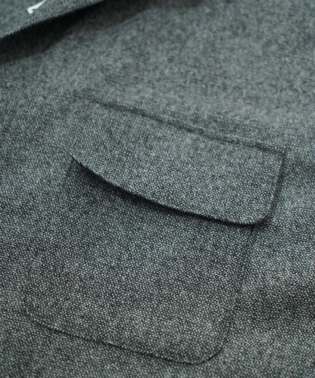 特筆すべきは、素材選びへのこだわり。地元の尾州ウールを使用し、細かく杢調に織り上げた程良い厚みのピンチェック柄が大人っぽい印象を醸し出しています。