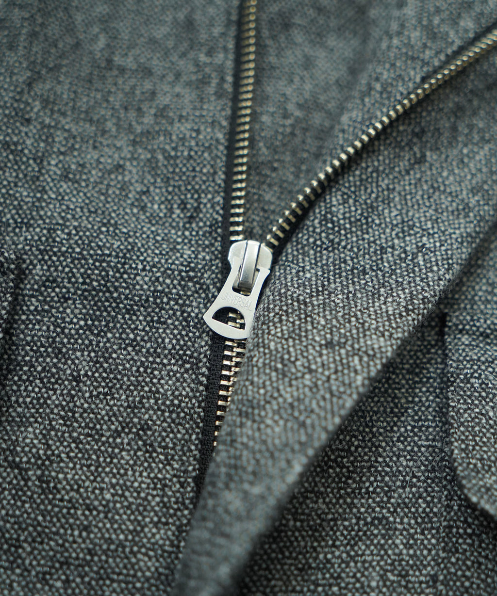 デザイン面では、細めのZIP前立てや、ボタンが見えないフラップポケットなど、スッキリとした印象に仕上げています。