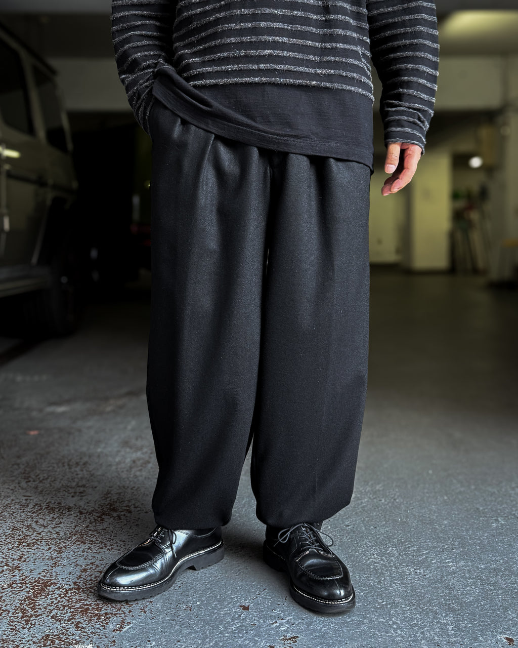 単品使いでも、同素材のV16509 SMOKING とセットアップでも楽しめる万能パンツです。