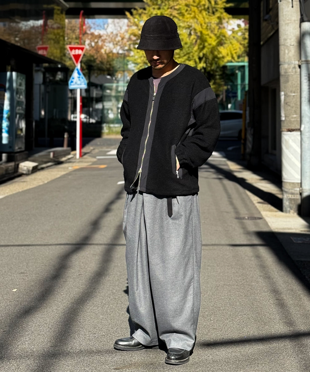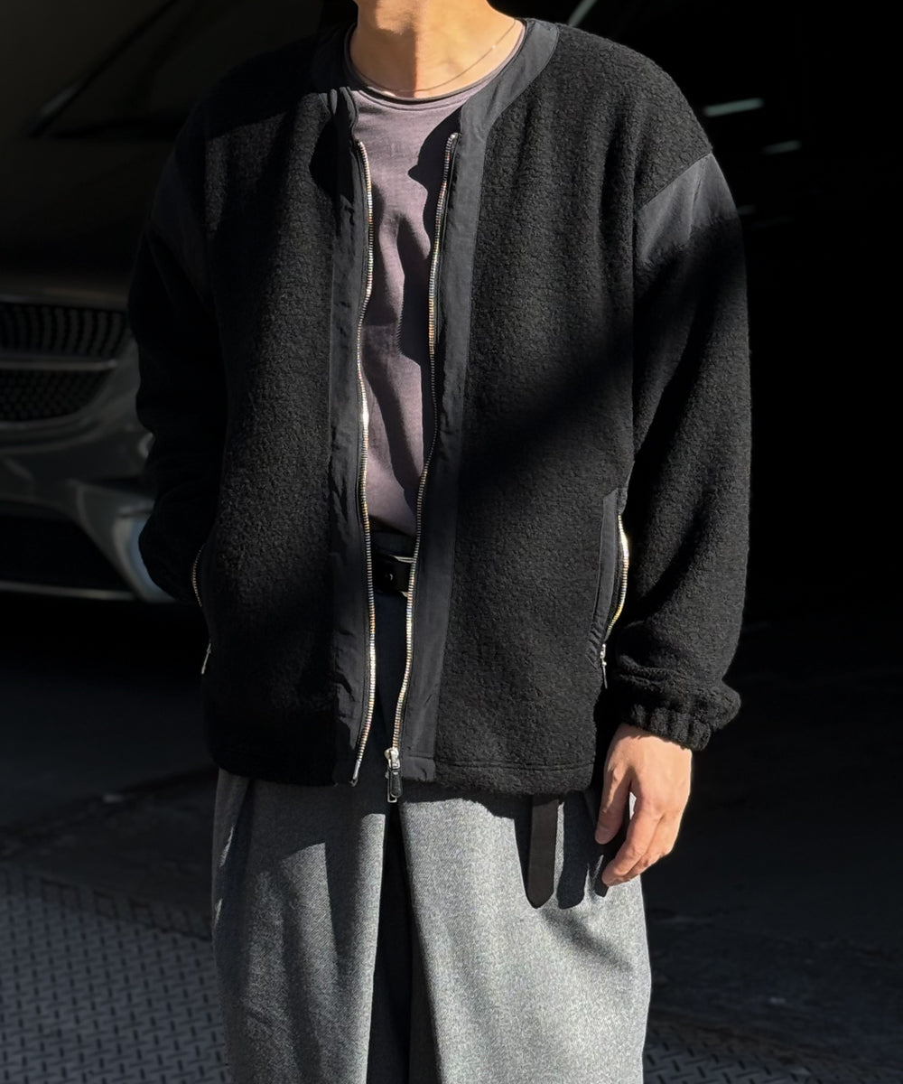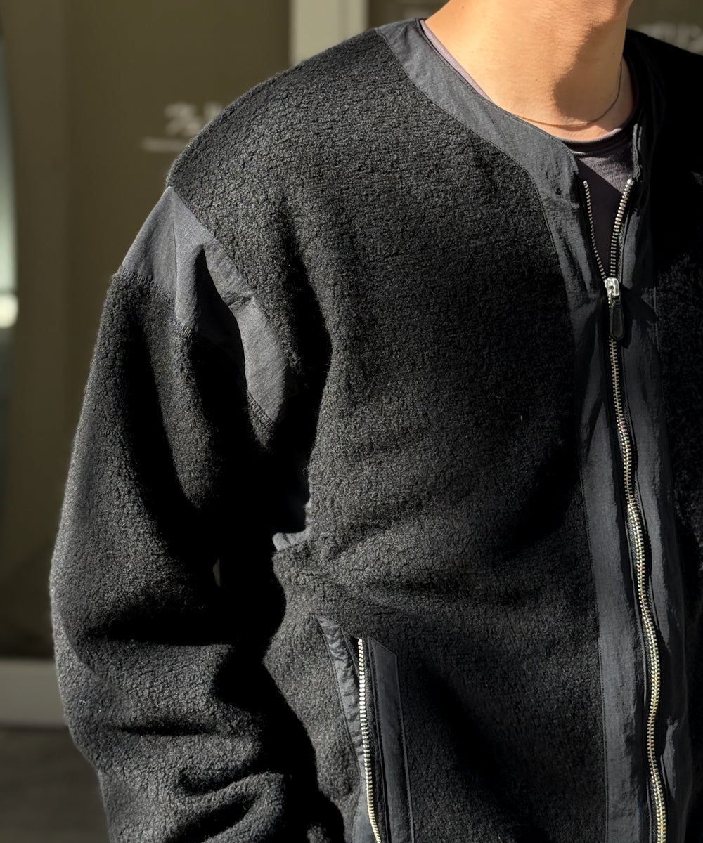 高級なウール混のパイルボアを贅沢に使用しながらも、あえてボリュームを抑えることで、さっと羽織れる軽快な着心地を実現しました。