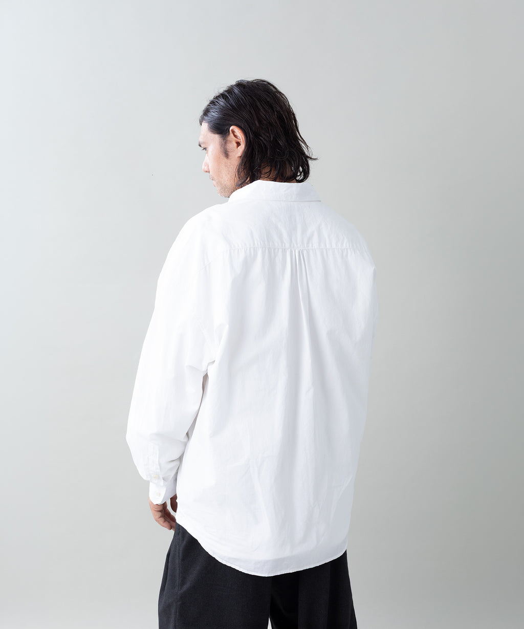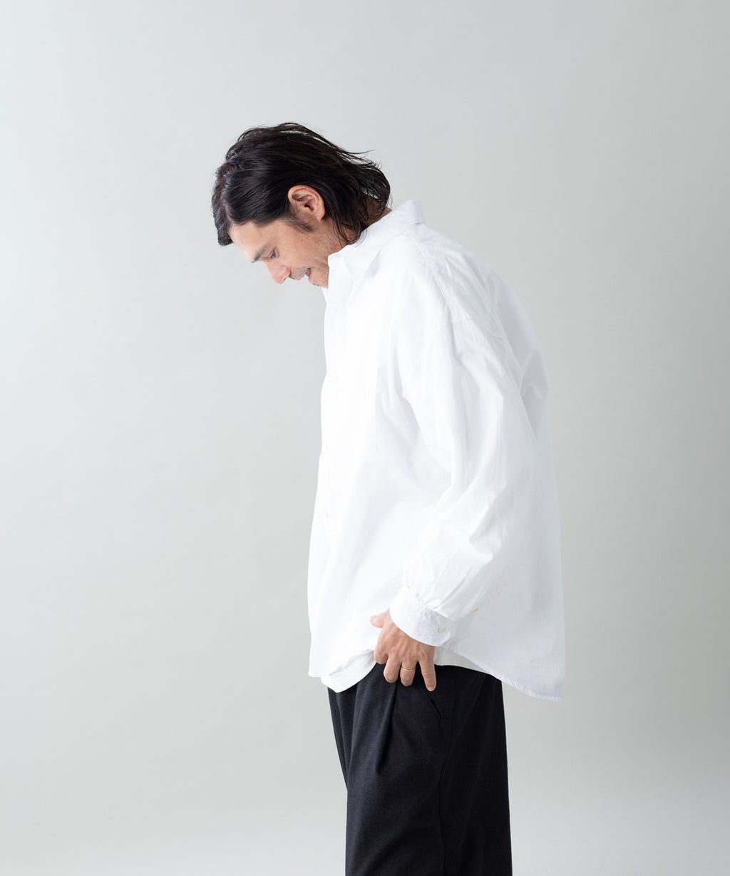 ベースには古いヨーロッパのシャツから着想を得たディティールと、超ワイドなシルエットを採用。