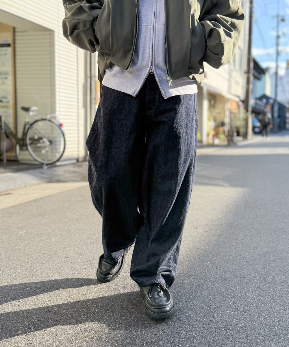 素材には若干薄めの12ozデニムを採用することで、求めていた落ち感と柔らかさを絶妙なバランスで実現しました。特筆すべきは、その計算し尽くされたシルエット。