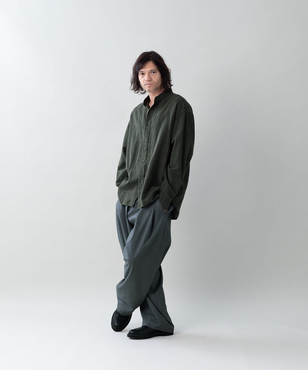 製品加工を経ることで自然に崩れ、まるで長年着古したような合いを纏います。
