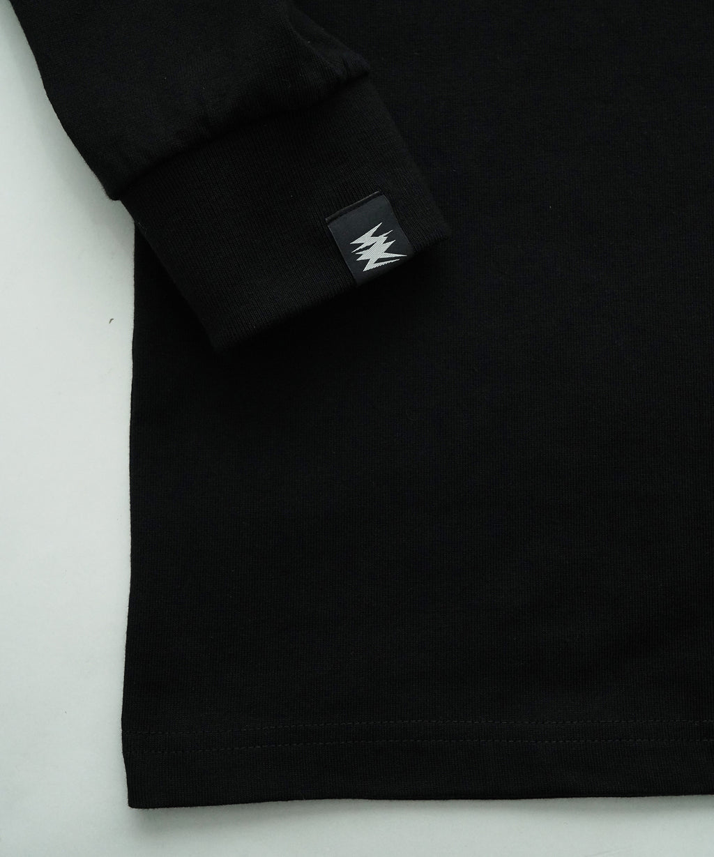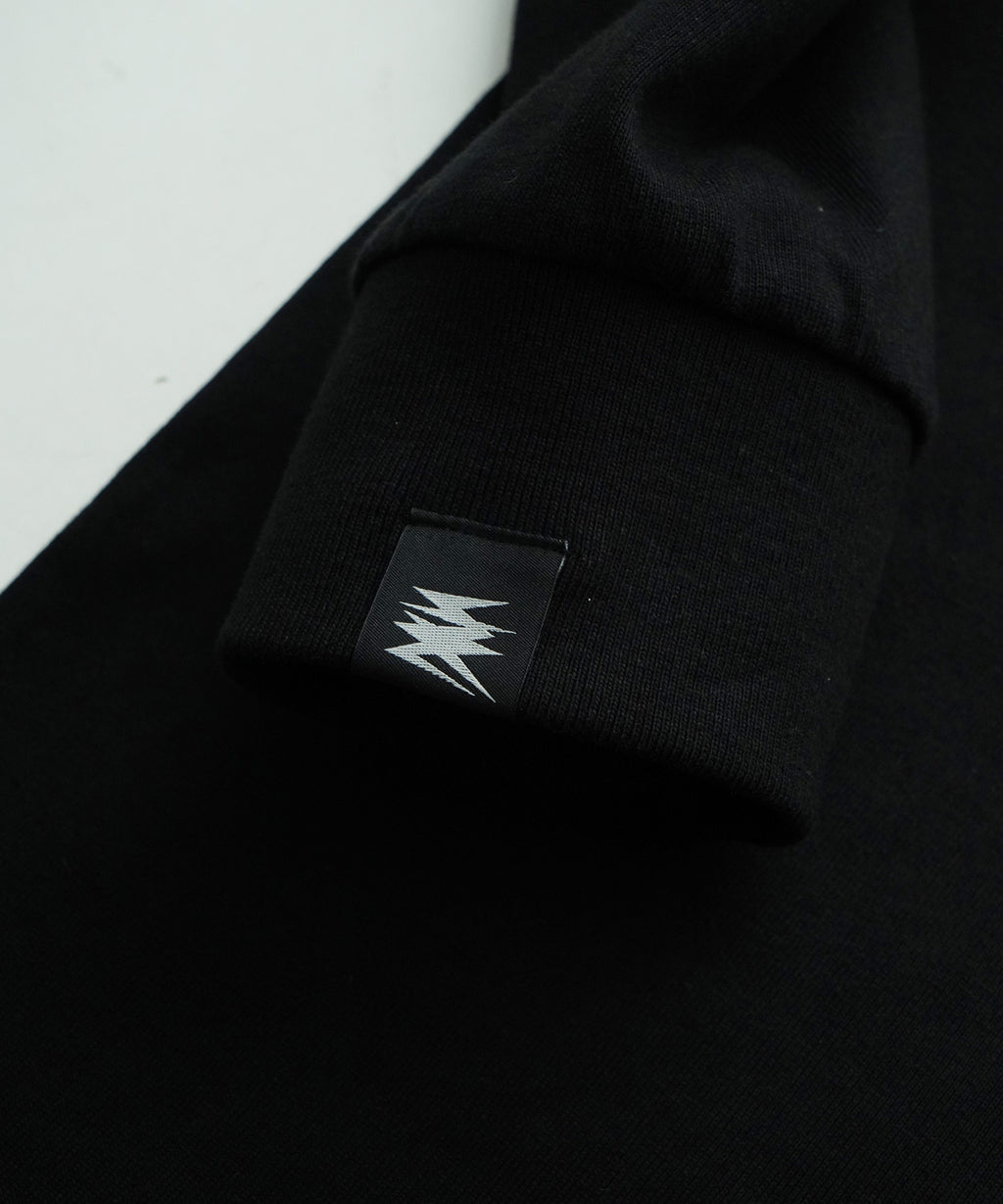 袖口にはブランドマークの入ったピスネームが取り付けられ、ネック部分はカットオフ仕様により、カジュアルスタイルに最適な表情を作り出しています。