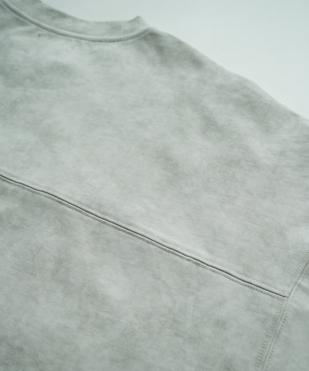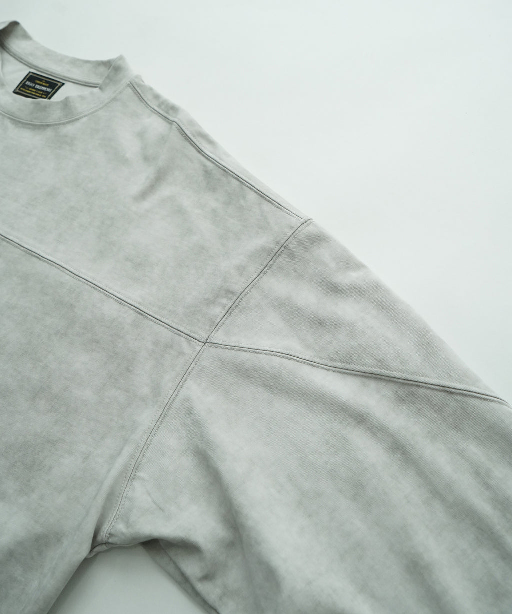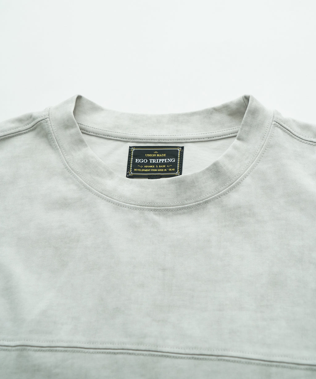 スウェットライクなゆったりとしたシルエットに、フットボールTのような切り替えデザインを取り入れることで、単調になりがちなカットソーに個性的なアクセントを加えています。