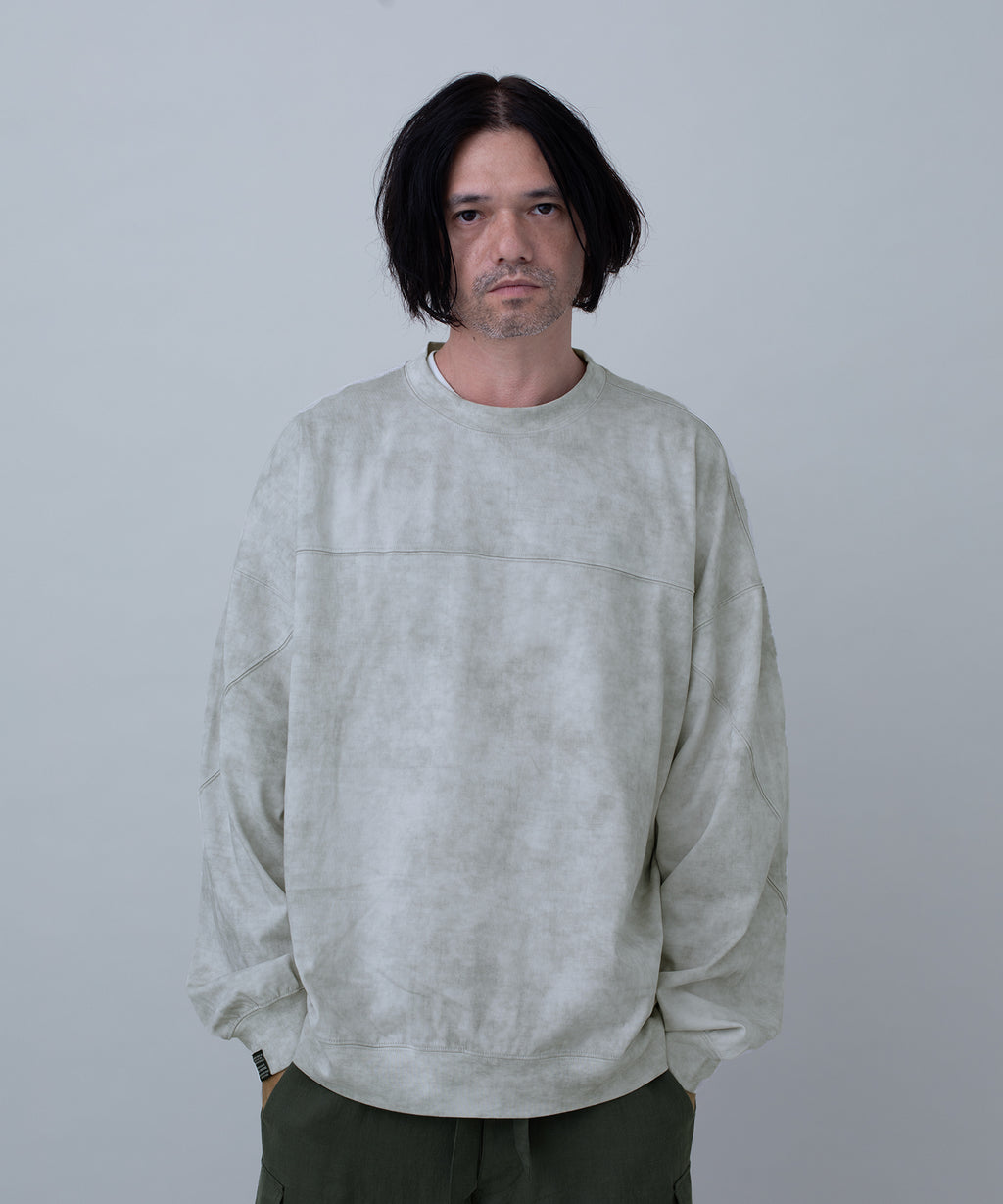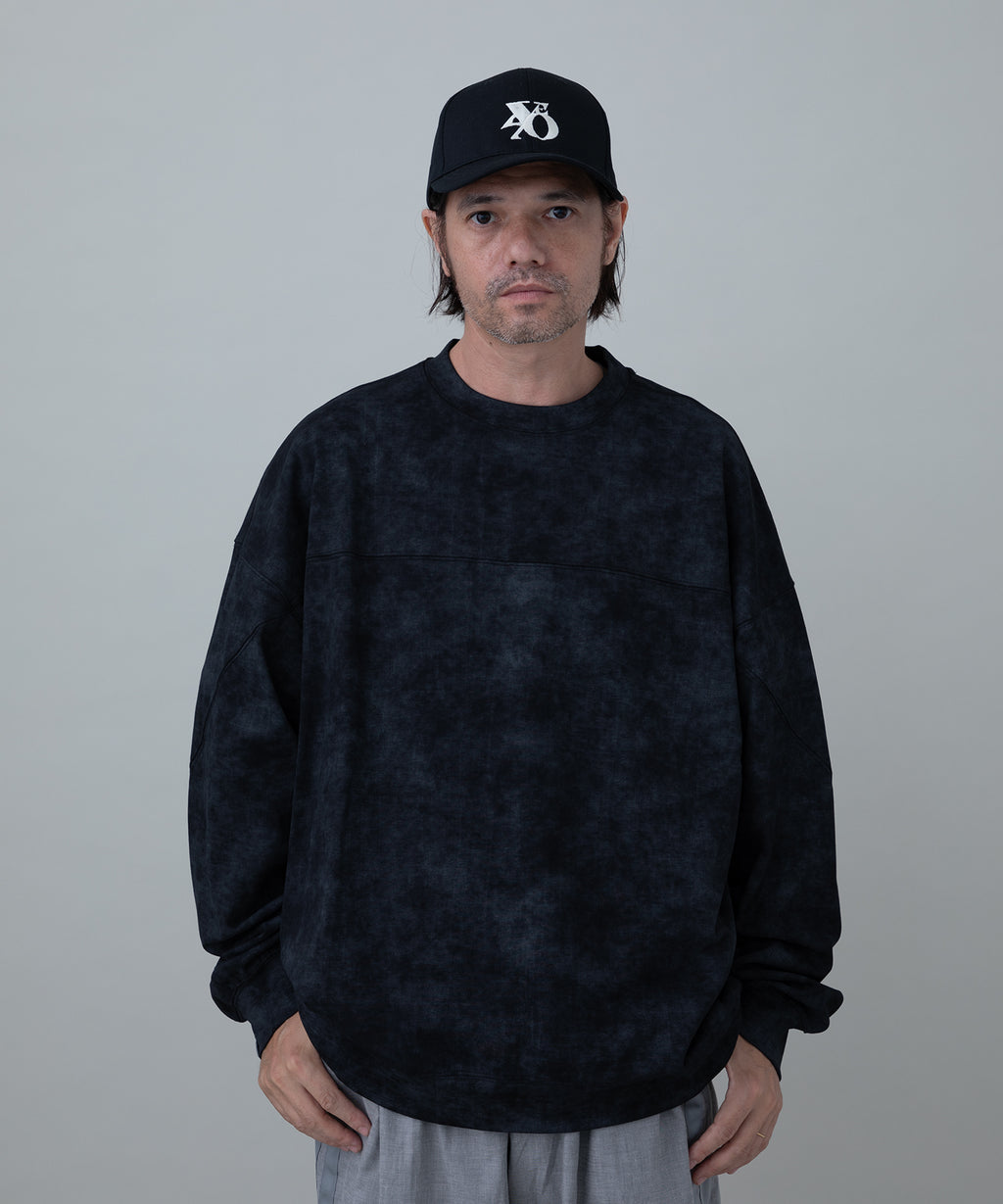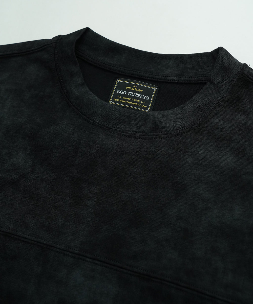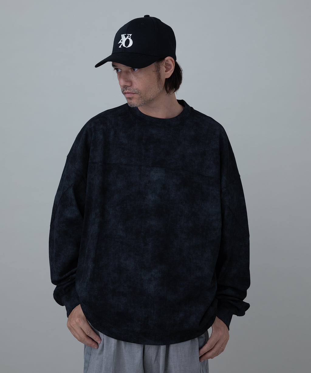 スウェットライクなゆったりとしたシルエットに、フットボールTのような切り替えデザインを取り入れることで、単調になりがちなカットソーに個性的なアクセントを加えています。