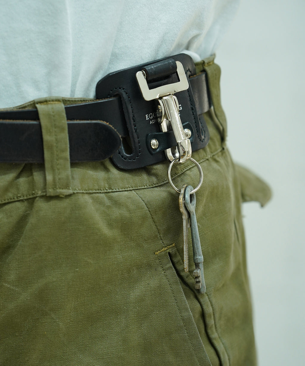 ベルトに通してフックに鍵やカラビナを掛けておける実用的な設計は、日常の動線の中で静かに存在感を放ちます。