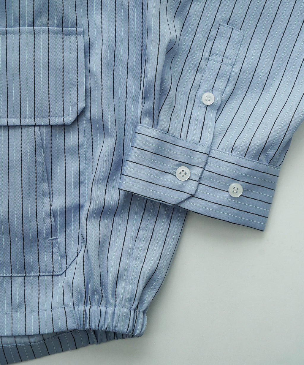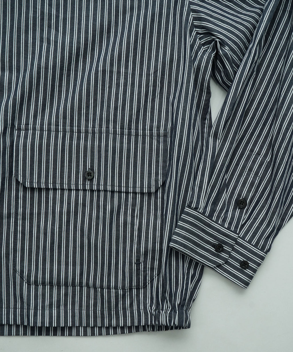 ドレス系のクラシックですっきりとしたストライプ素材を使用したバルスタージャケットです。