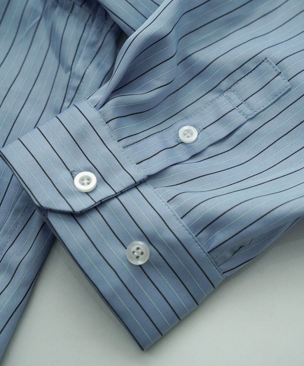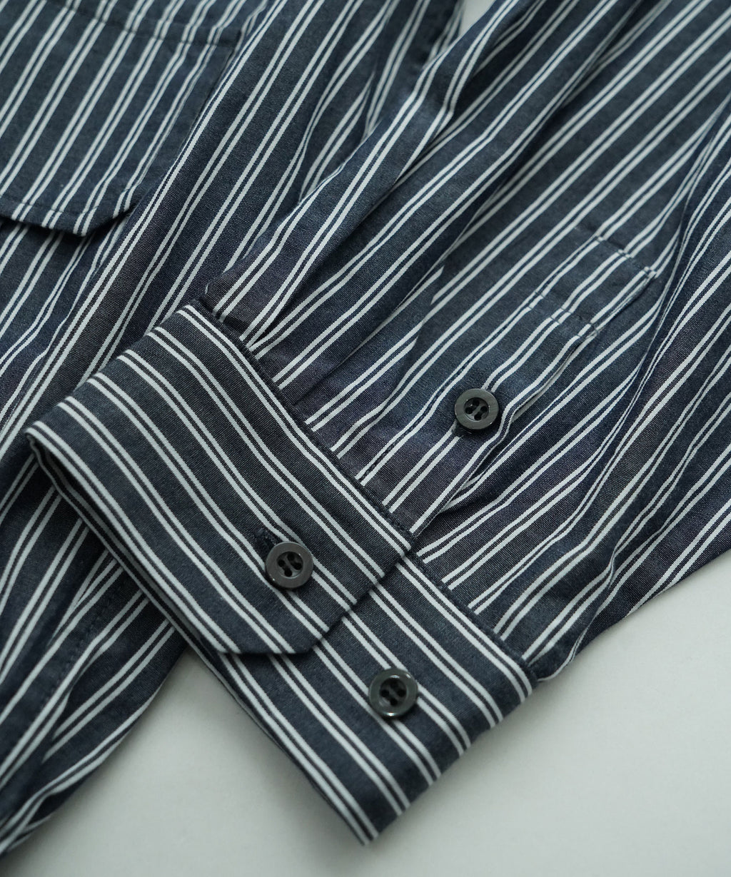 ドレス系ストライプの持つ上品さと、丸みを帯びたシルエットが生み出すソフトな印象が絶妙に調和し、クラシックでありながらも新鮮な存在感を放っています。