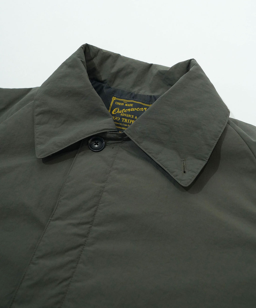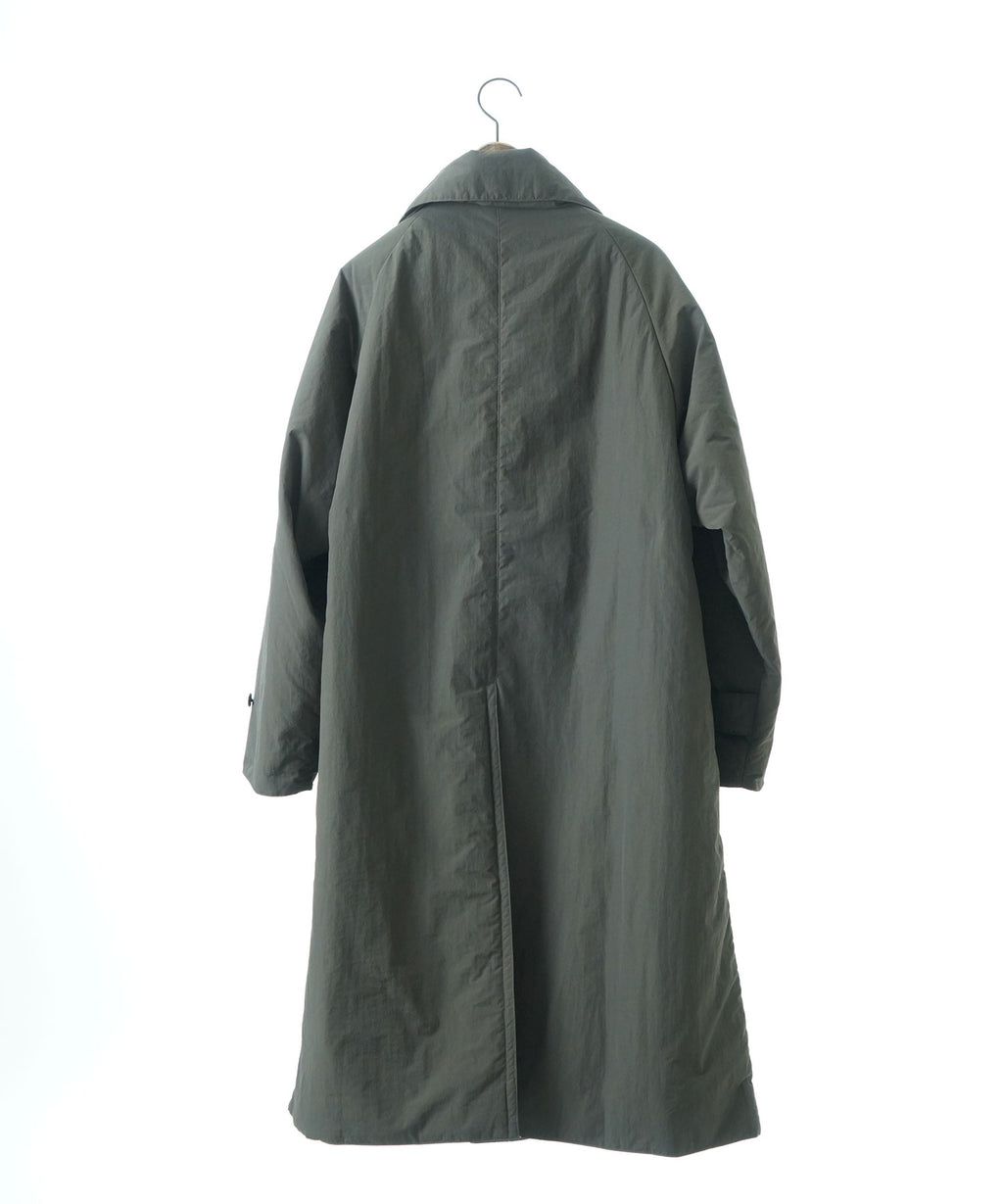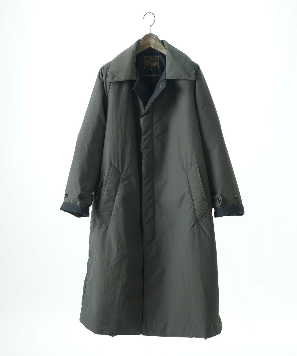 従来のロングコートの暖かさを享受しながらも、その最大の欠点である重さを解消するべく、軽い中綿仕様で仕立てたバルマカンコート。