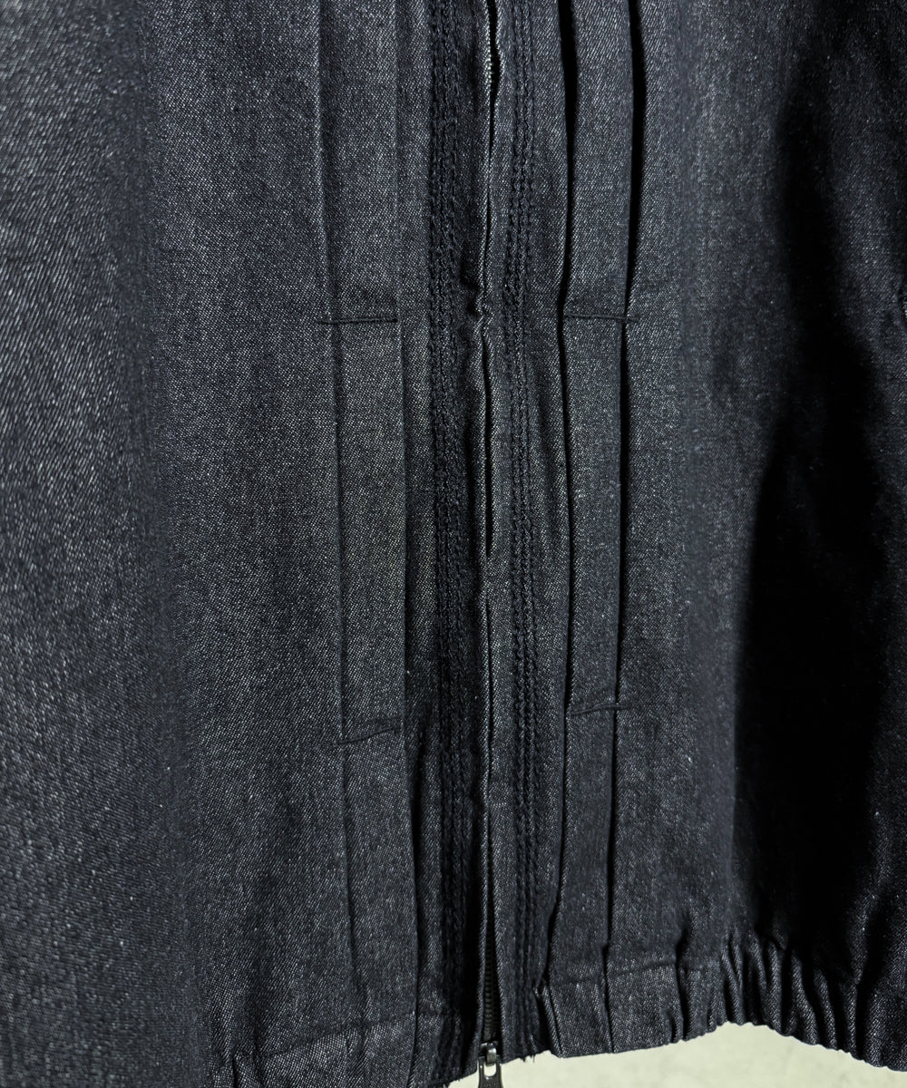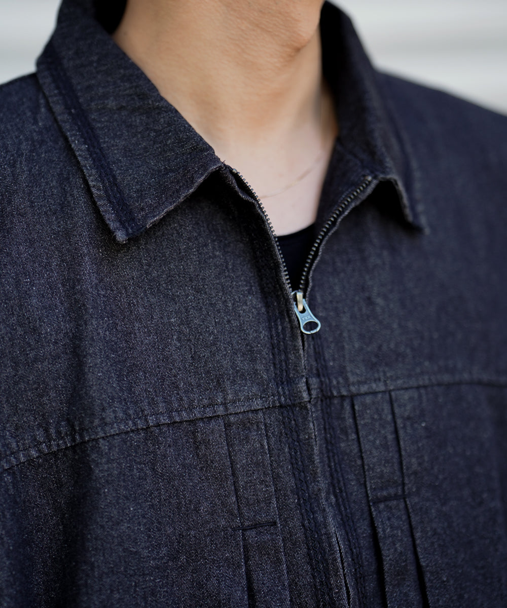 ヴィンテージウェアを彷彿とさせるフロントのプリーツディテールが印象的なデニムジャケット。