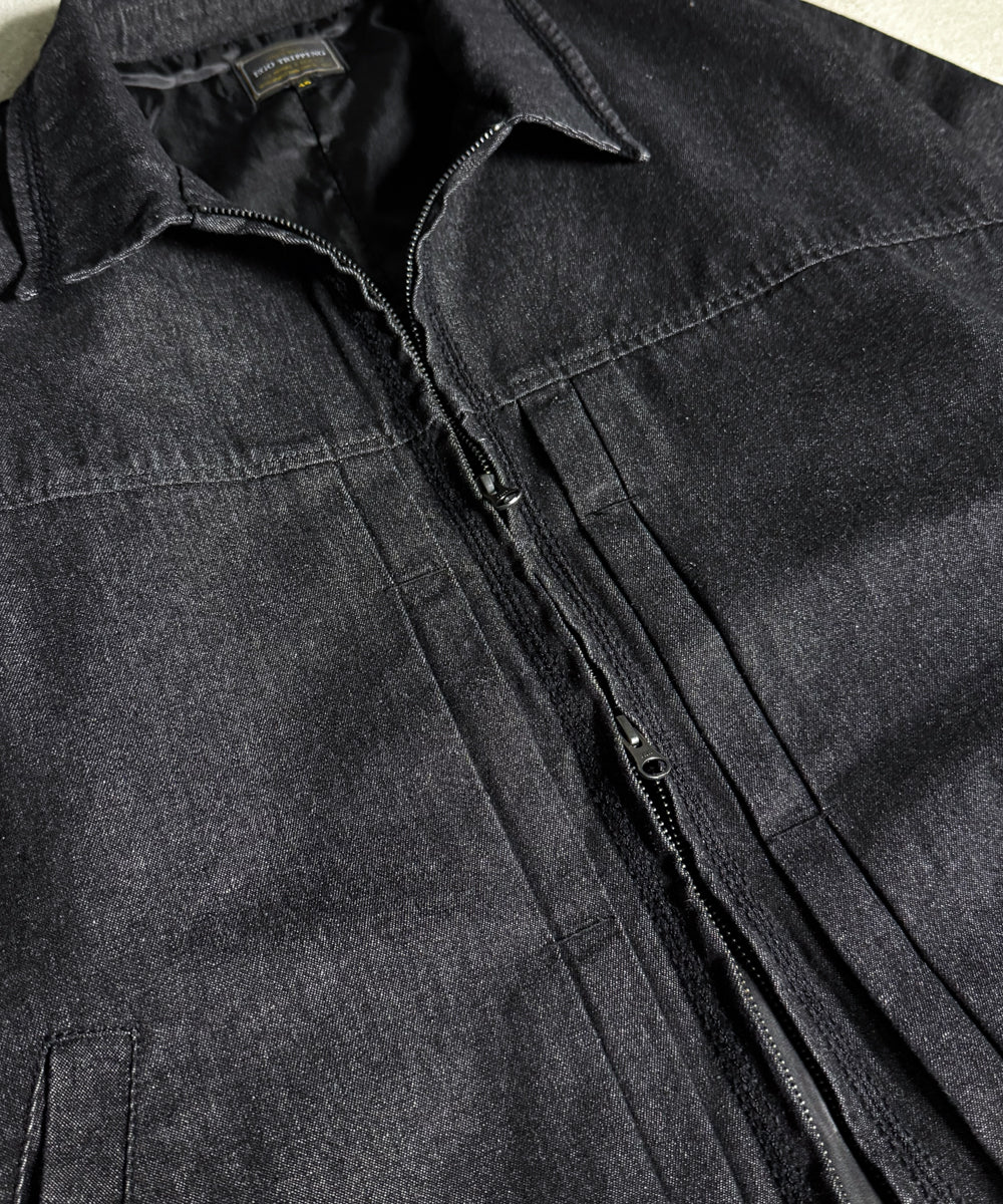 クラシックなデニムジャケットの要素をベースに、構造とシルエットで現代的に再構築した一着。