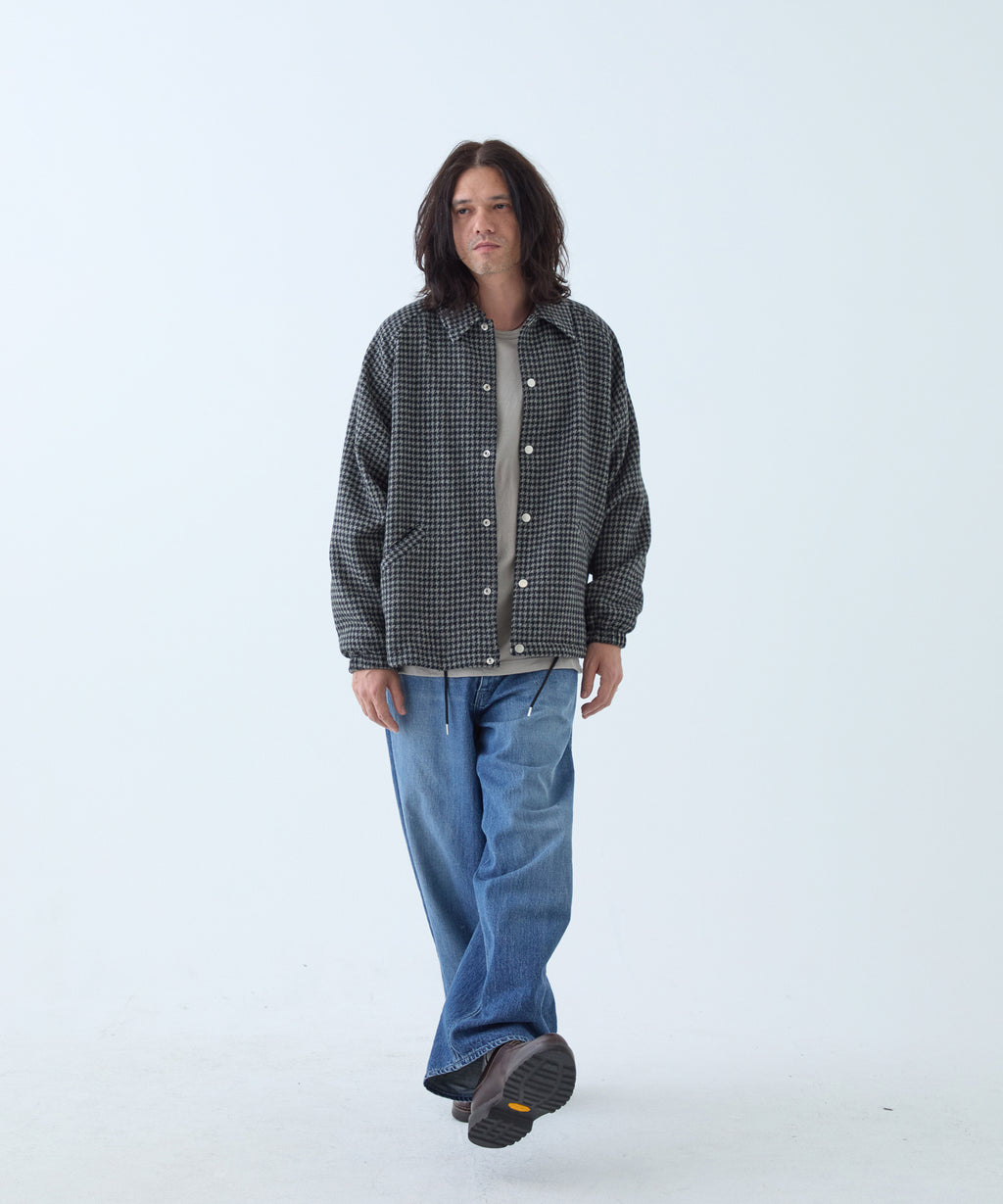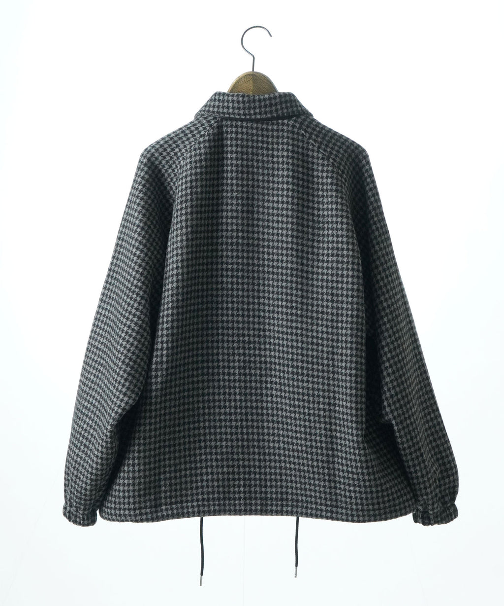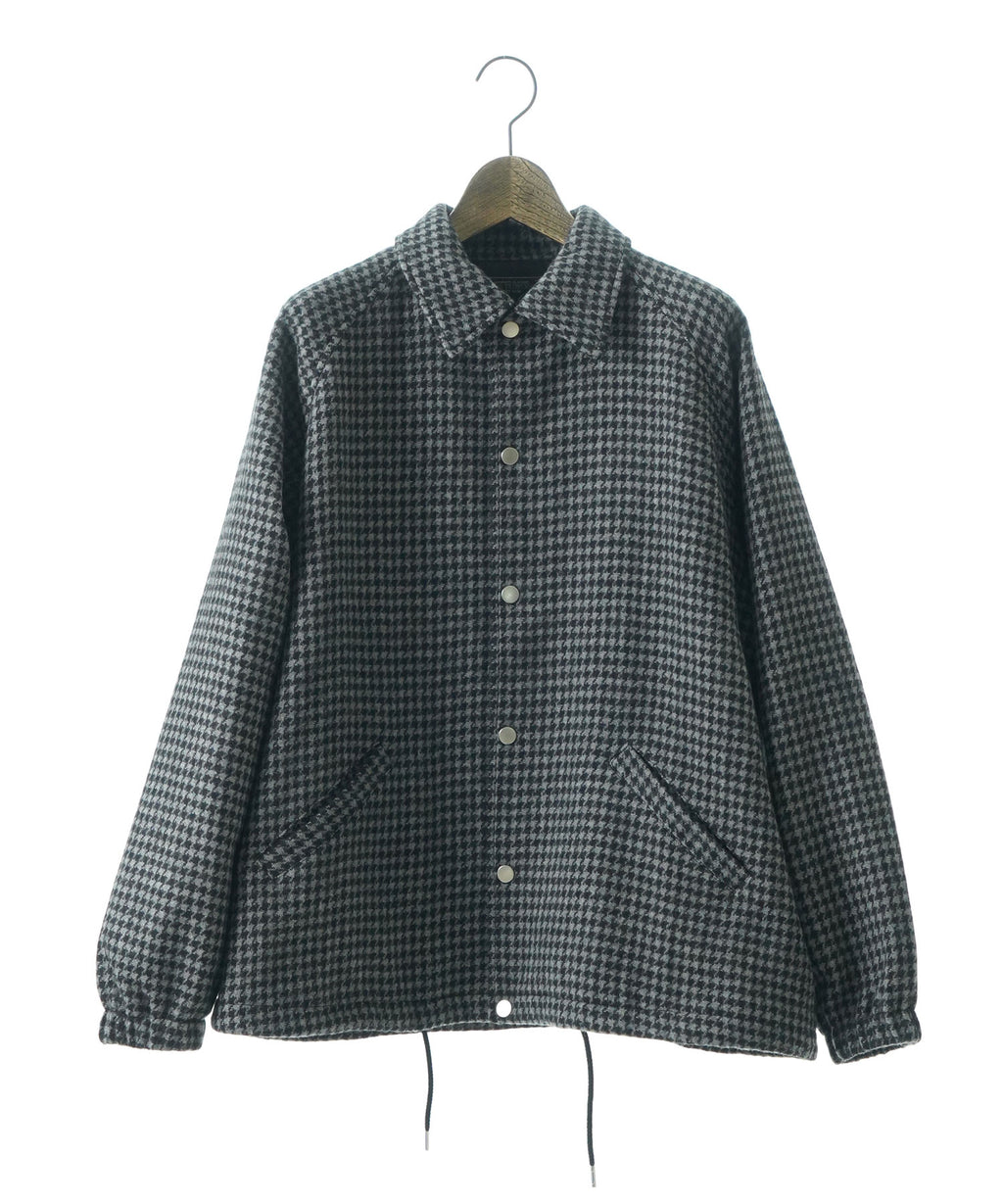 一般的に高級感を演出する千鳥格子のウール素材を、スポーツカジュアルの代表格であるコーチジャケットのシルエットで仕立てるという意表を突く組み合わせが、このジャケットの最大の特徴です。