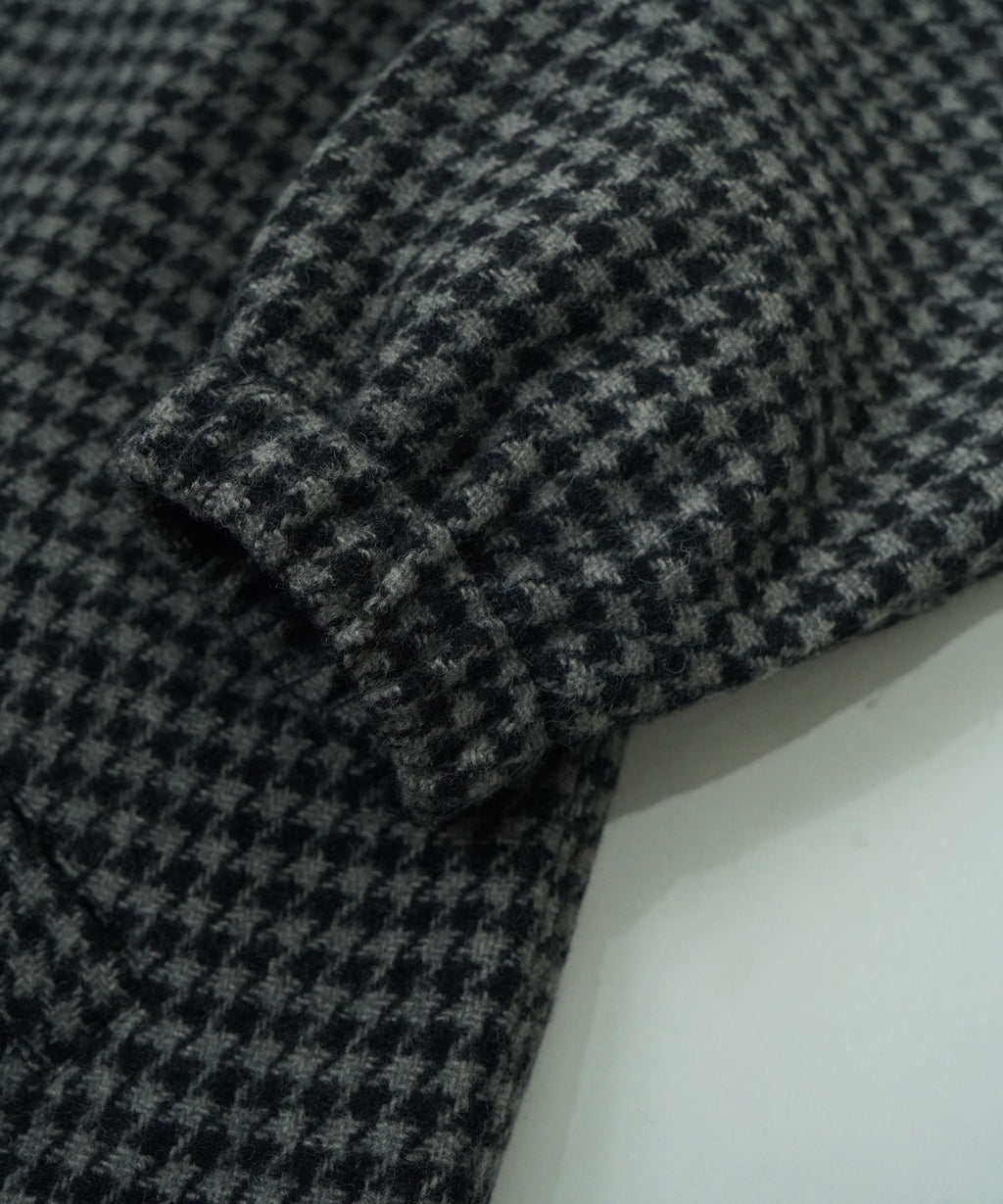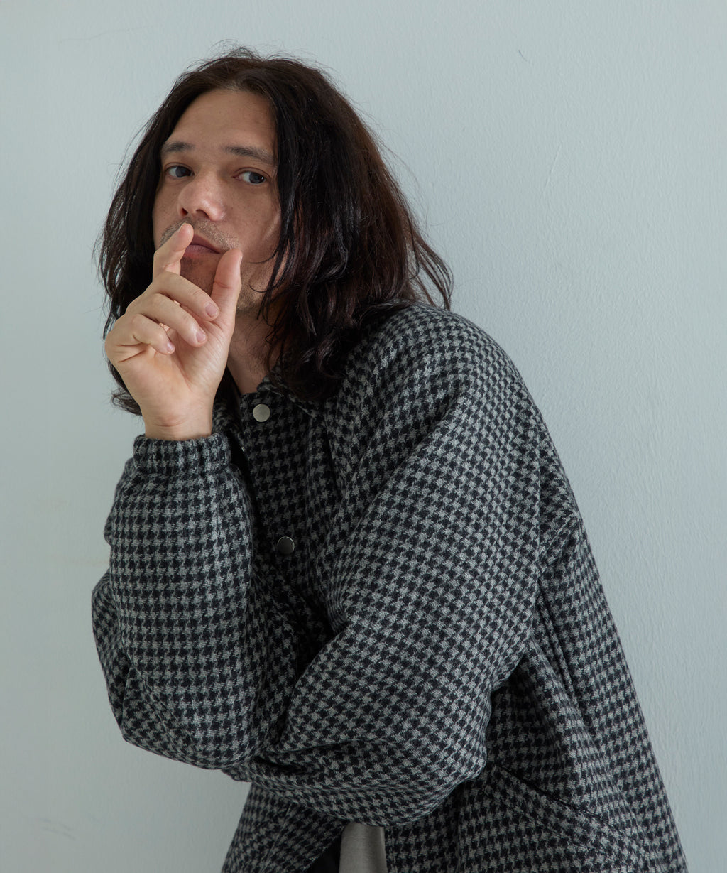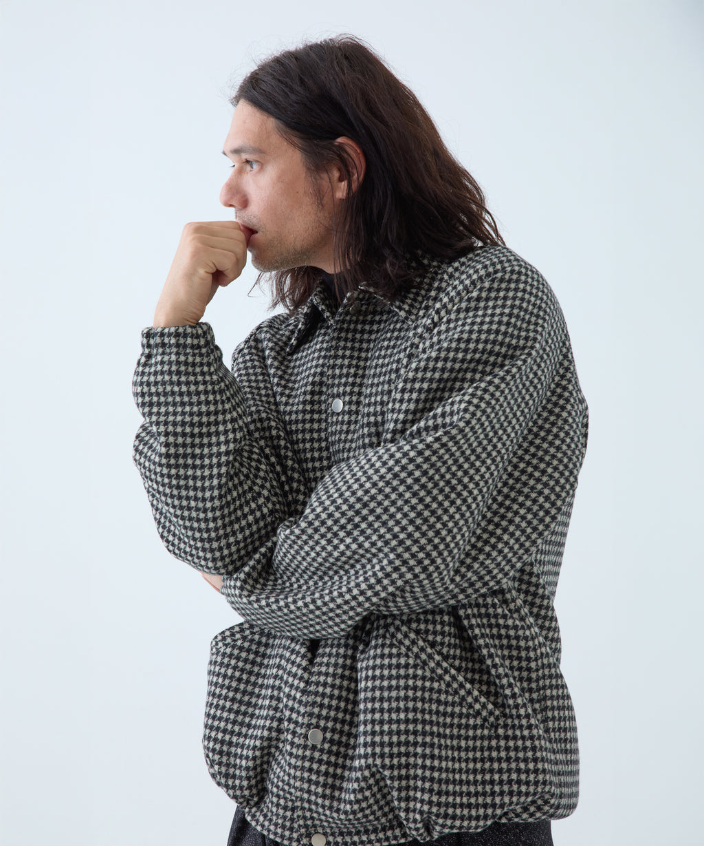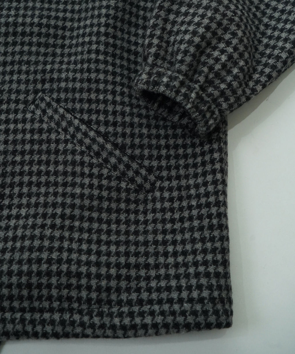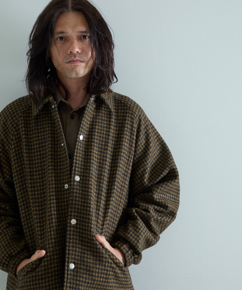 「ウールの千鳥柄という綺麗に見えがちな素材で敢えてカジュアルなコーチジャケットを作った」という斬新な発想から生まれた一着です。