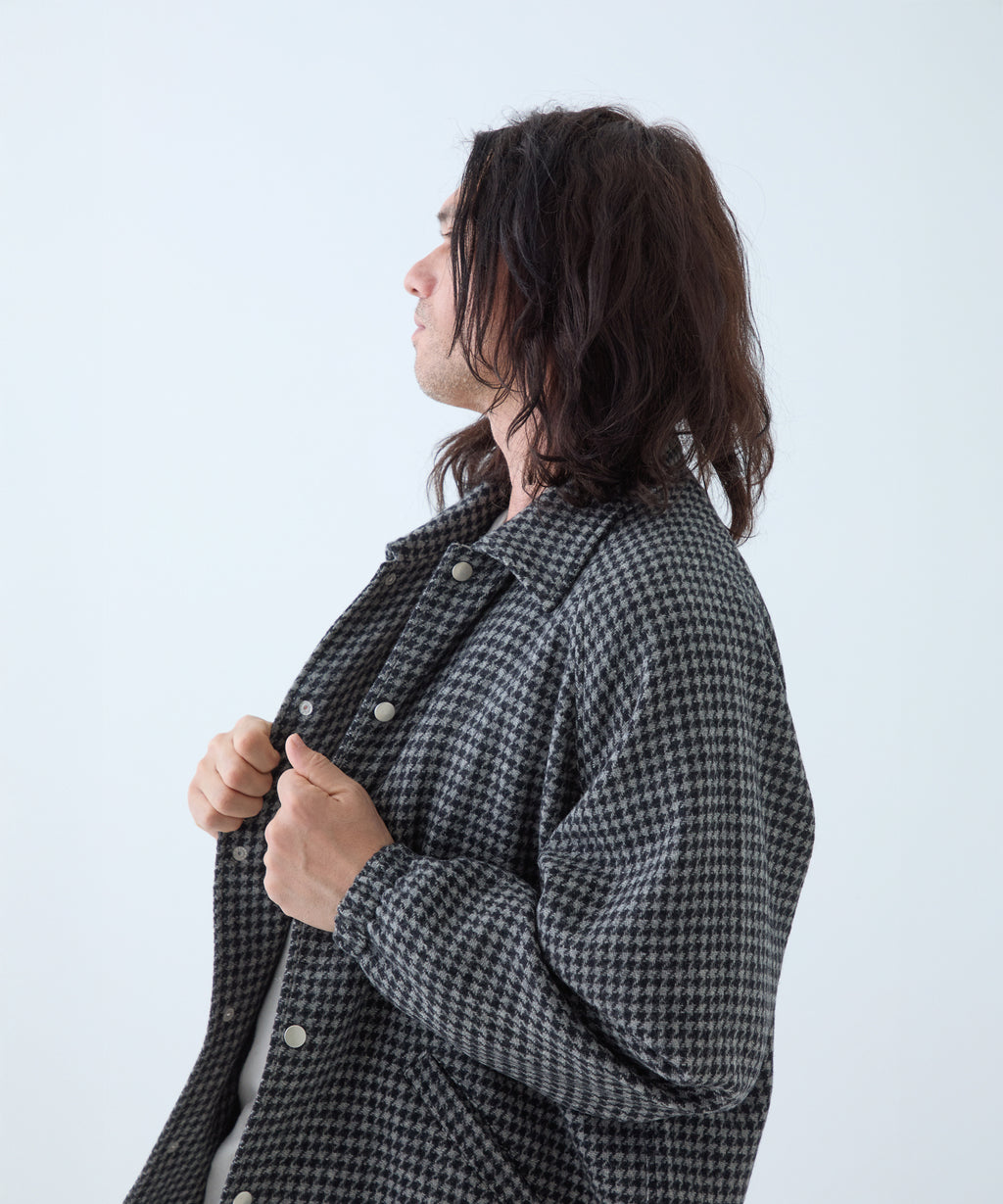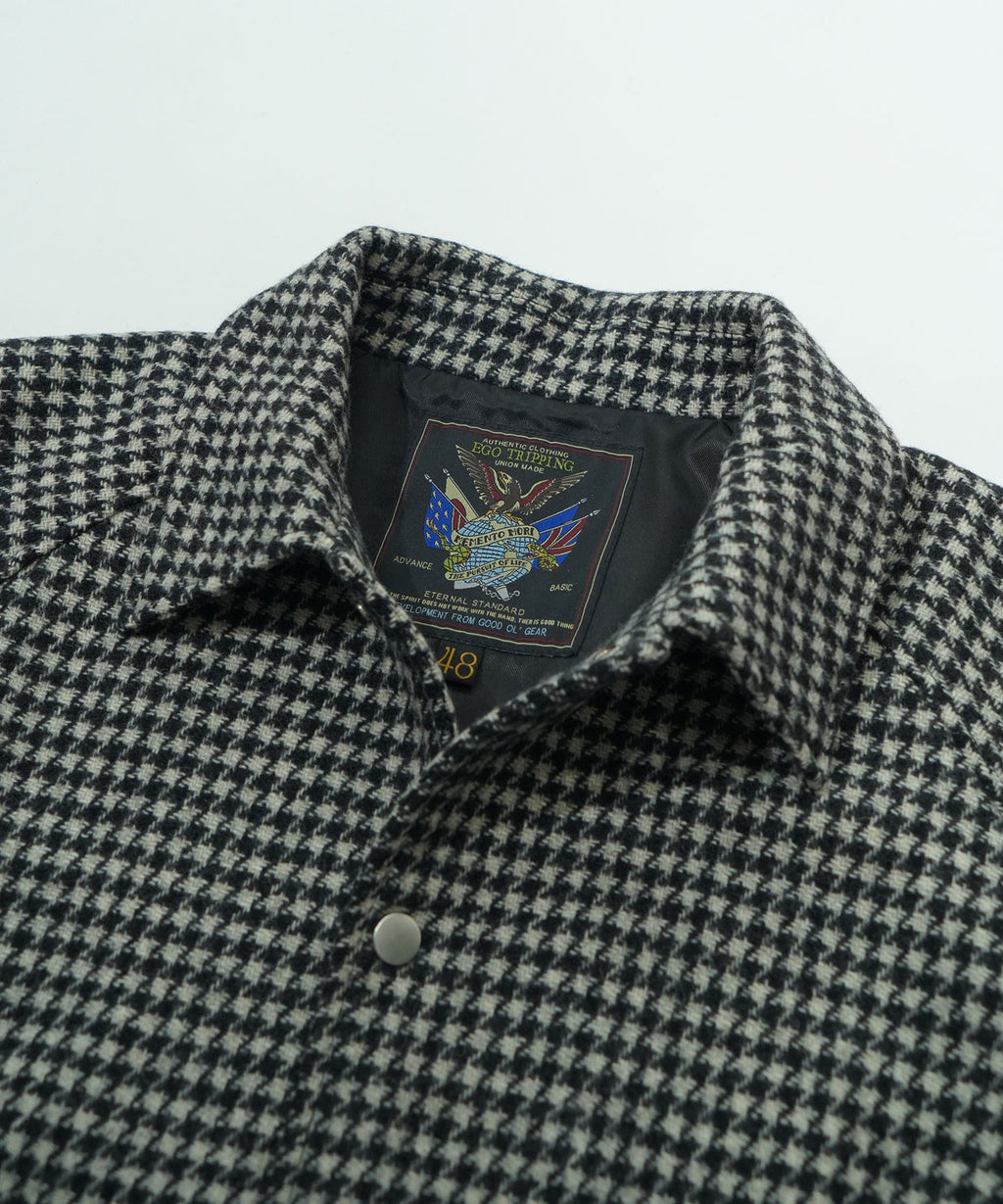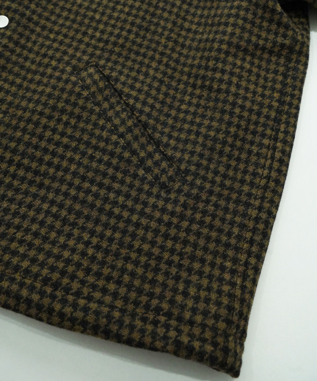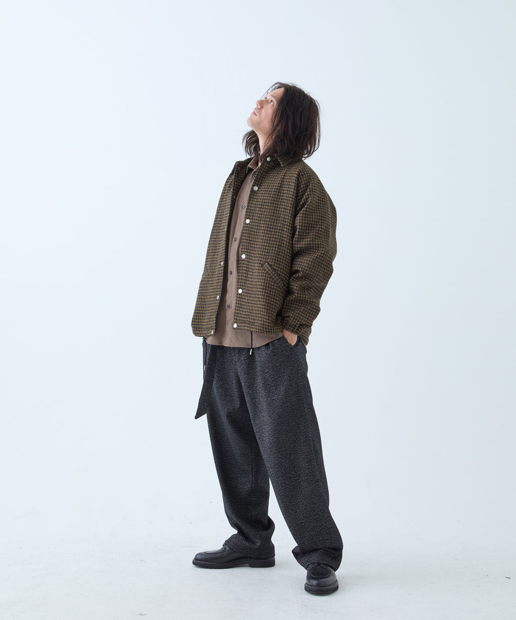 「ウールの千鳥柄という綺麗に見えがちな素材で敢えてカジュアルなコーチジャケットを作った」という斬新な発想から生まれた一着です。