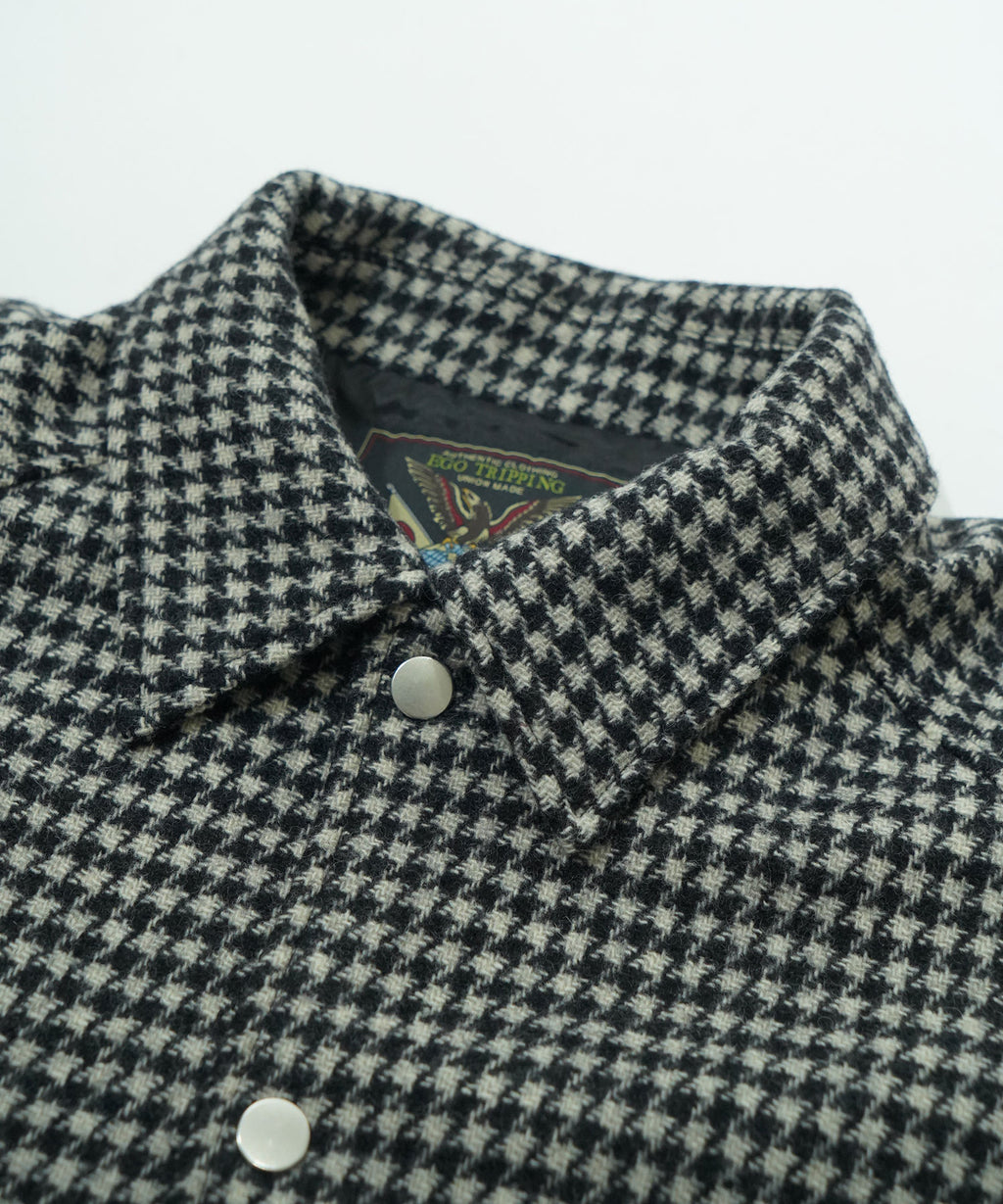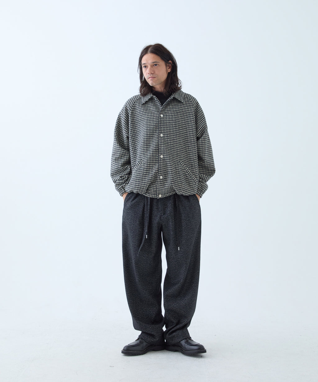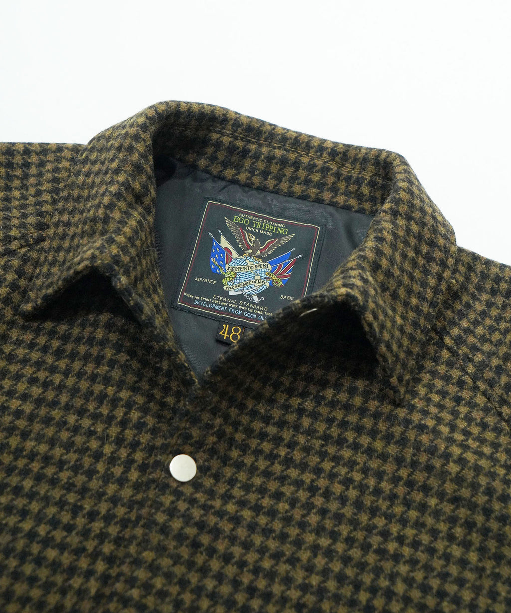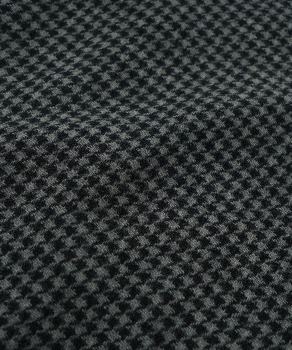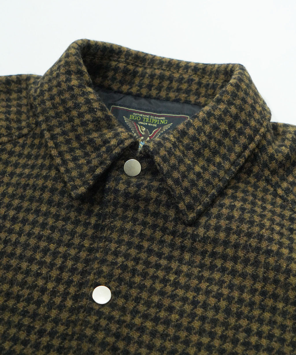 「ウールの千鳥柄という綺麗に見えがちな素材で敢えてカジュアルなコーチジャケットを作った」という斬新な発想から生まれた一着です。