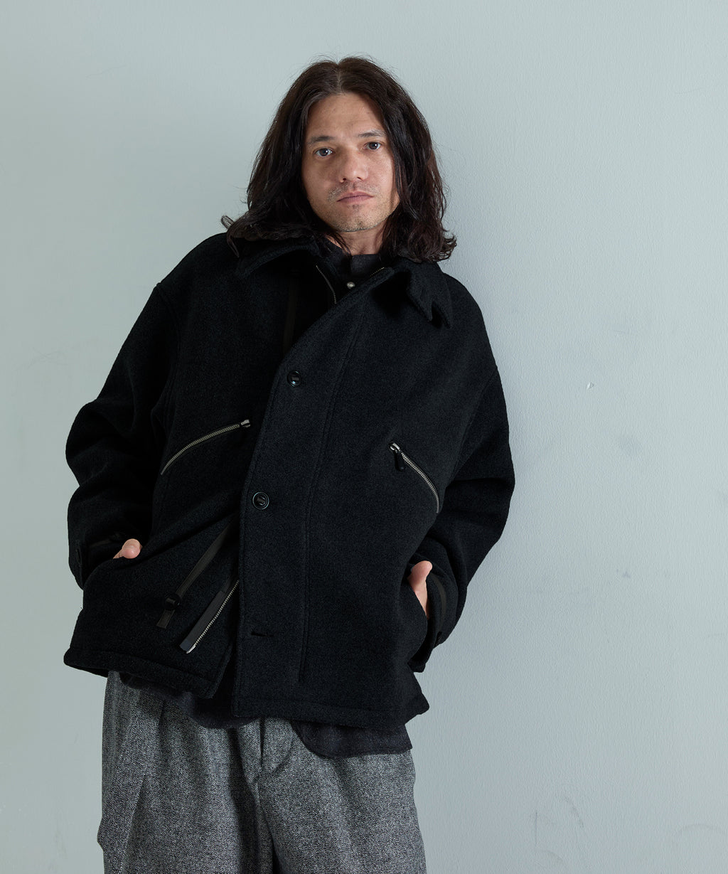 本来コットン素材で知られるMK3、ナイロン素材のMK4という系譜を進化させ、ウール素材で上品な防寒アウターとして仕立てた「MK5」とも言うべき新たな解釈を提案しています。