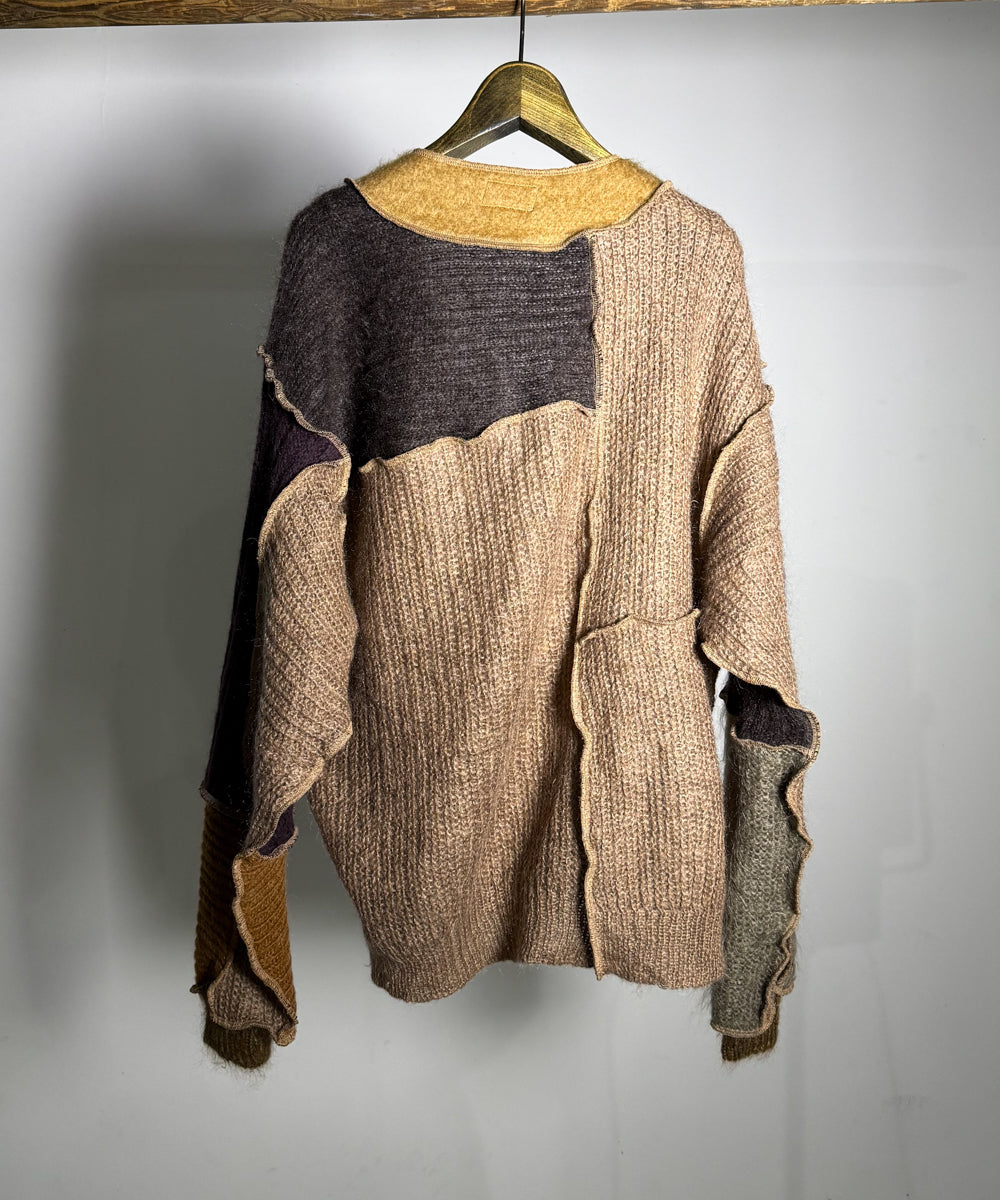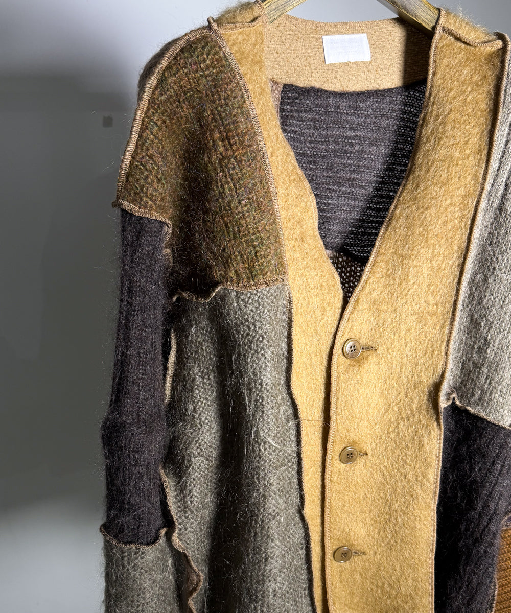 複数のウールセーターを解体し、再構築によって生まれたモヘアカーディガン。