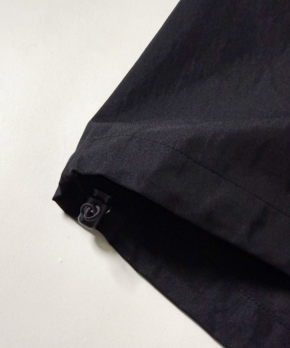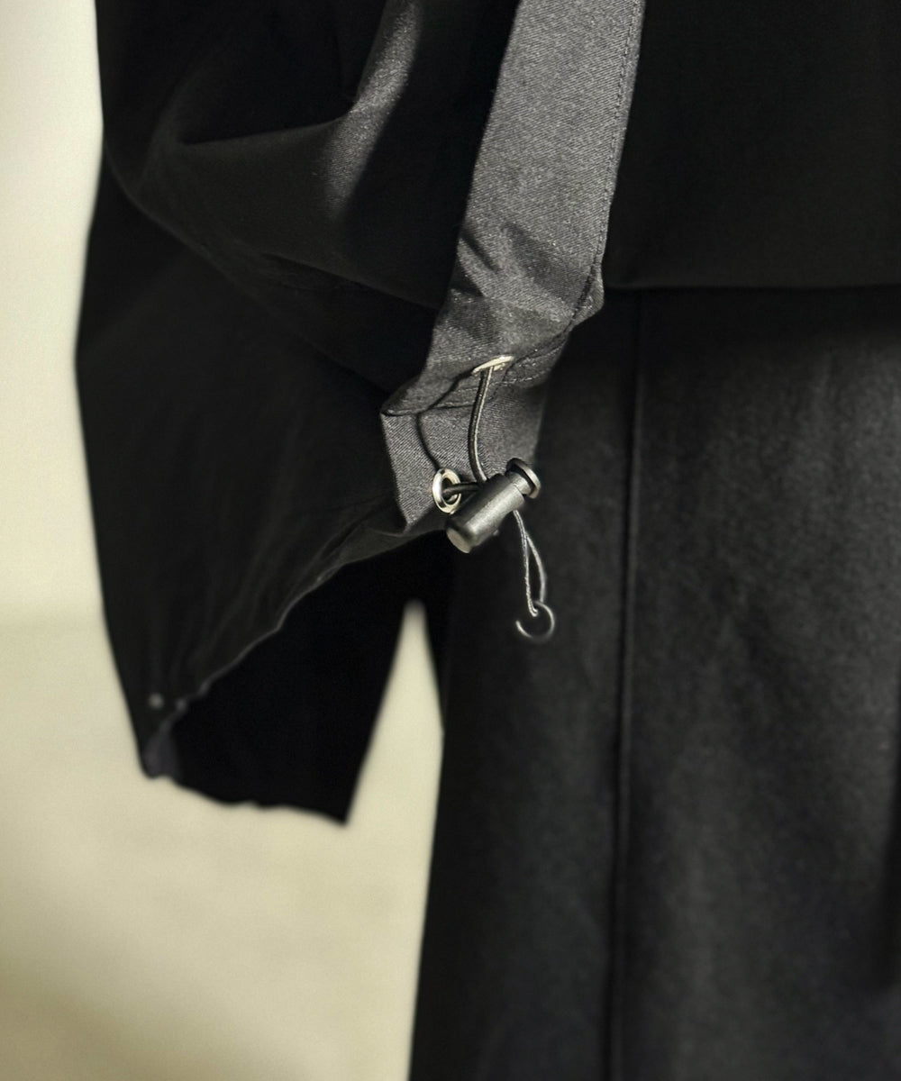 裾のドローコードを絞ることで、自然な丸みのある“卵型シルエット”を作れます。