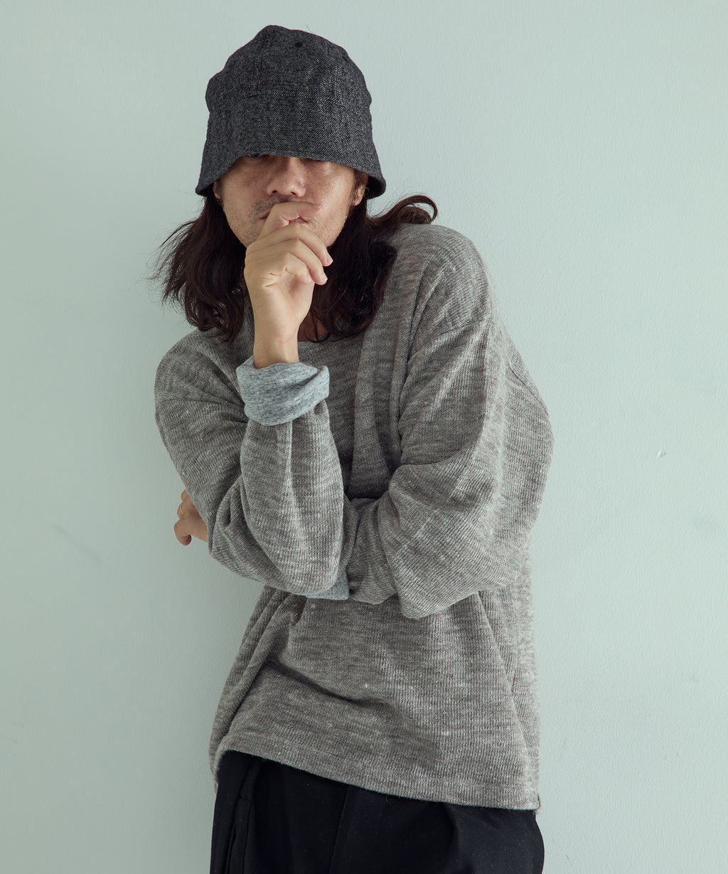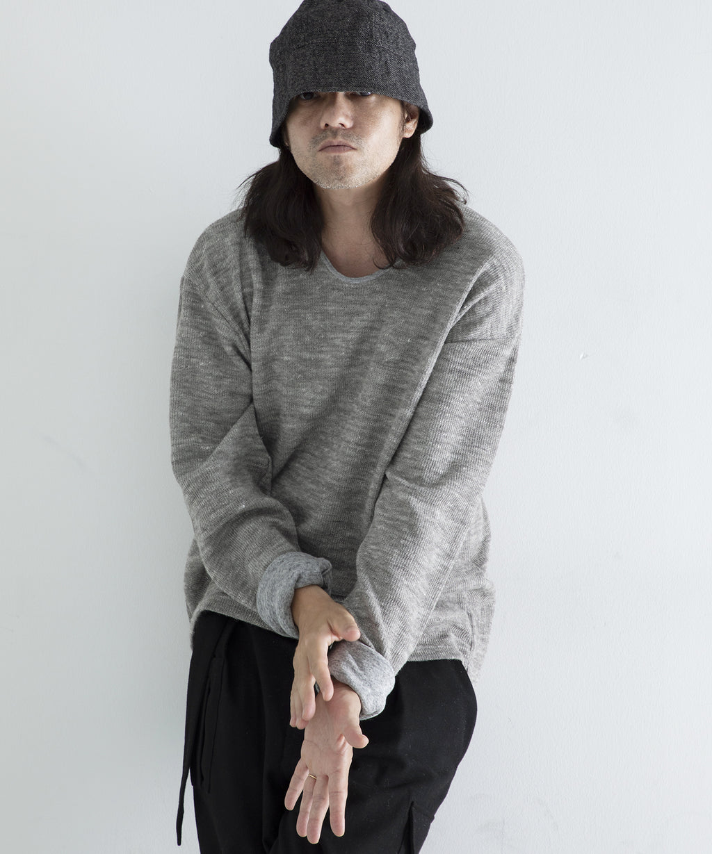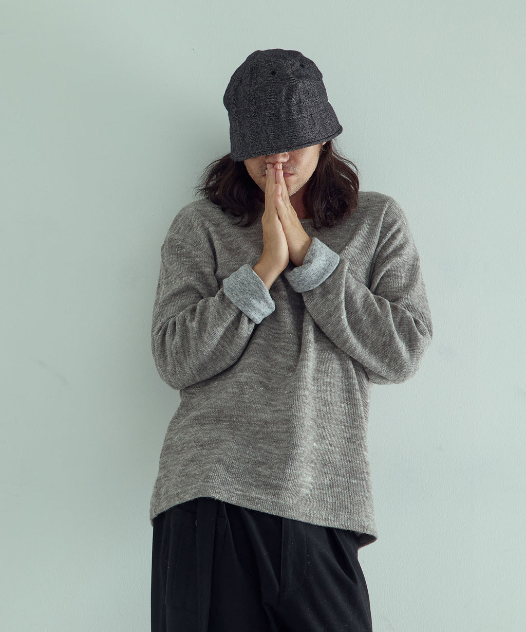 一般的なロングTシャツの概念を覆す、特徴ある表面感のウール素材を採用することで、普段着の領域を超えた存在感を放ちます。