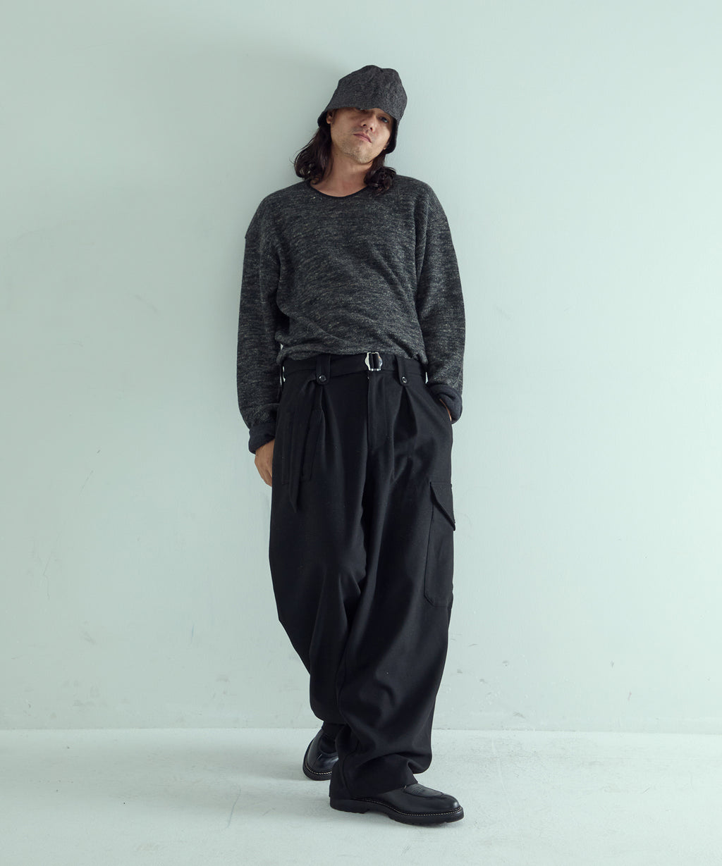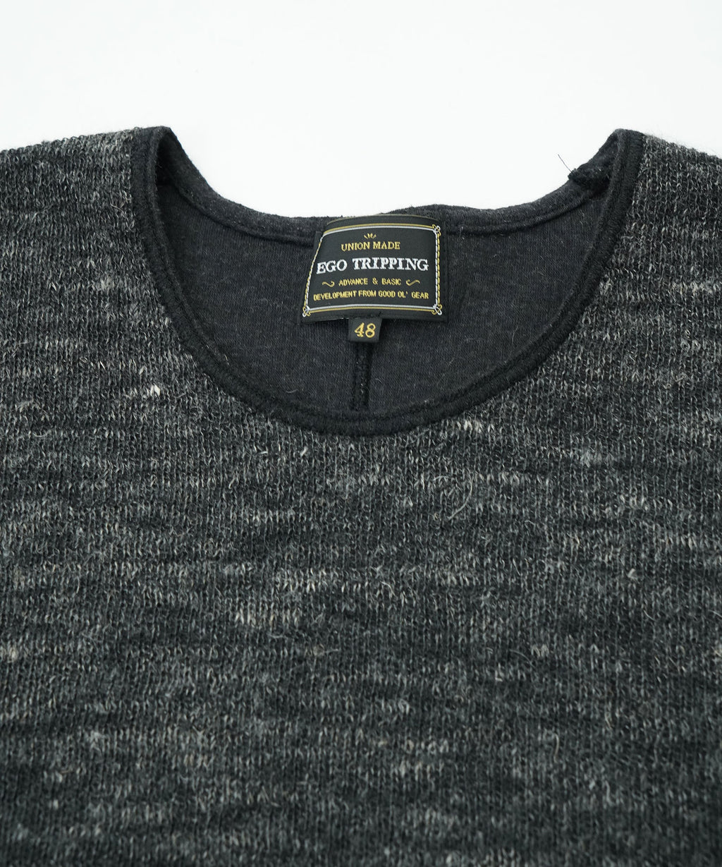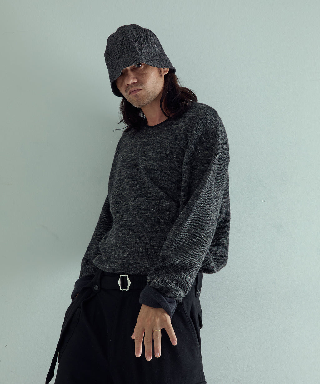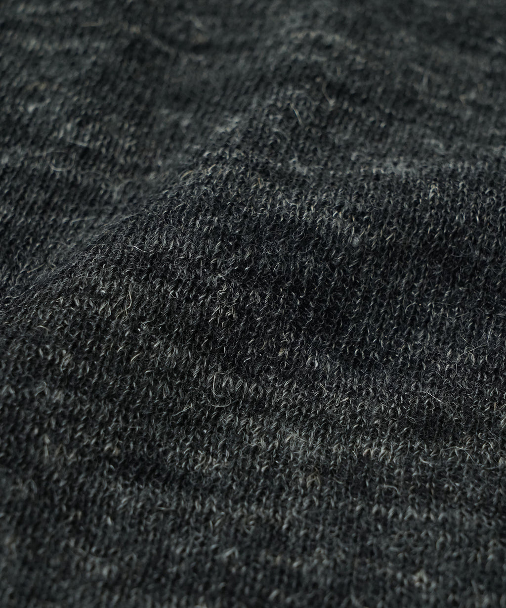 一般的なロングTシャツの概念を覆す、特徴ある表面感のウール素材を採用することで、普段着の領域を超えた存在感を放ちます。