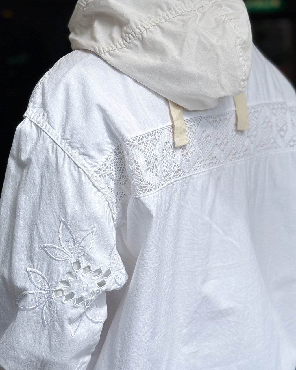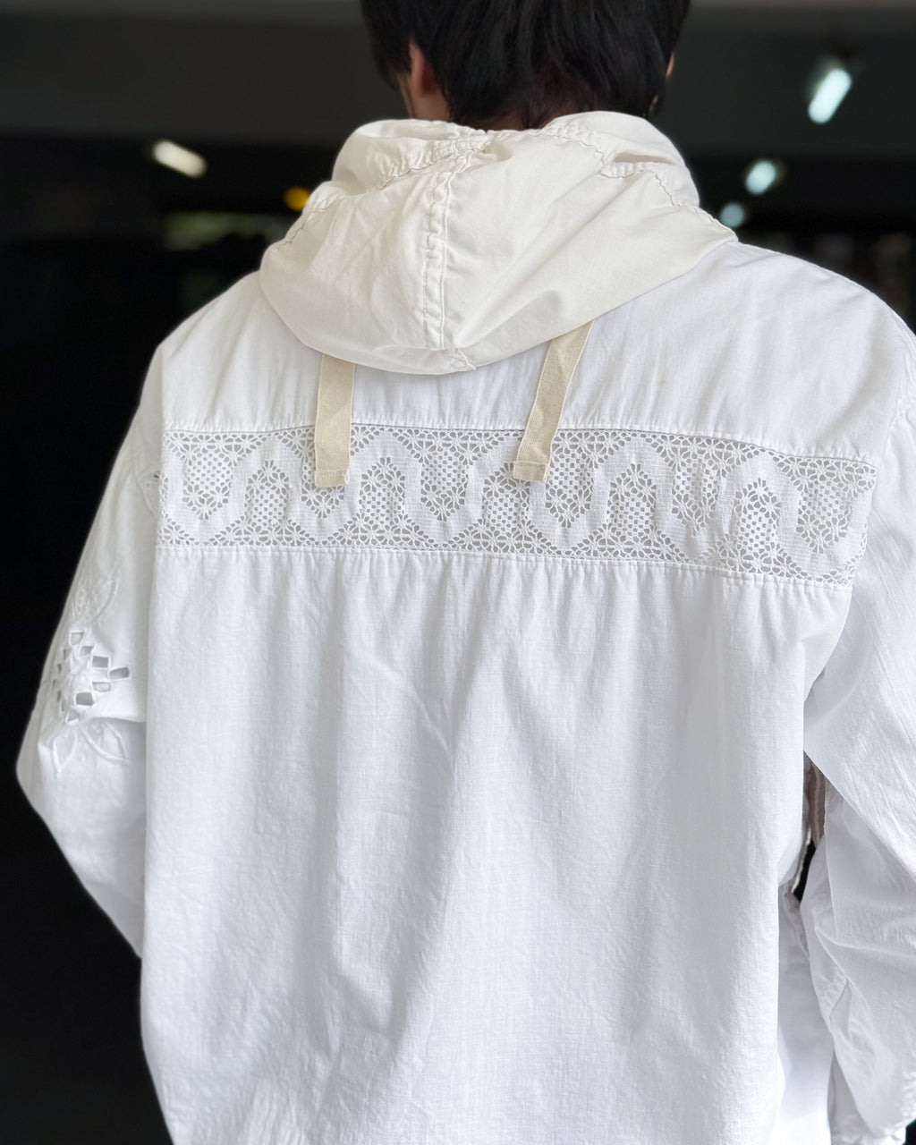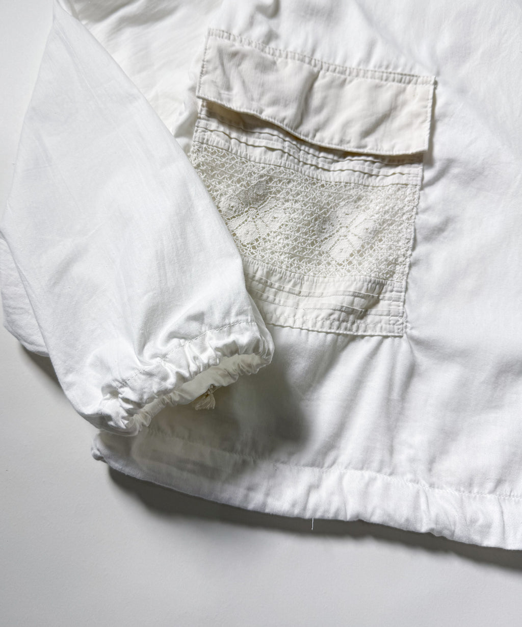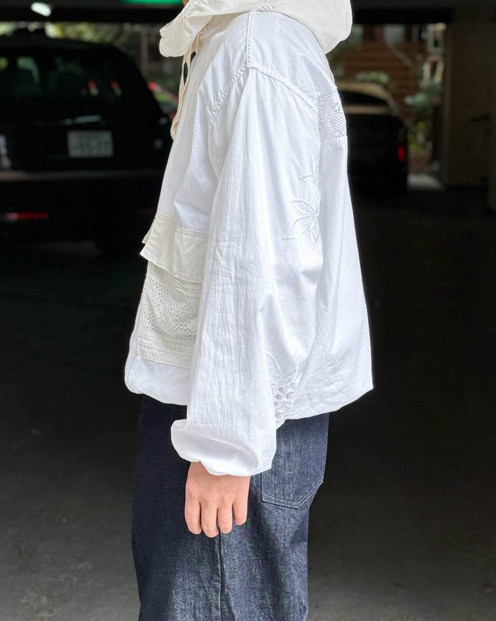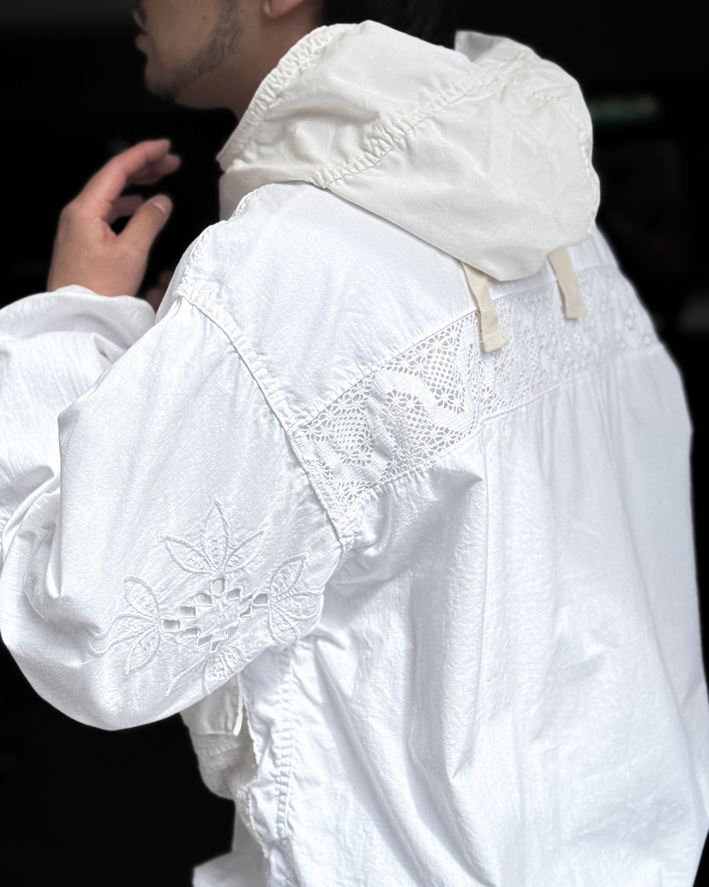 ヨーロッパのヴィンテージクッションカバーを解体し、再構築したサルベージパーカー。