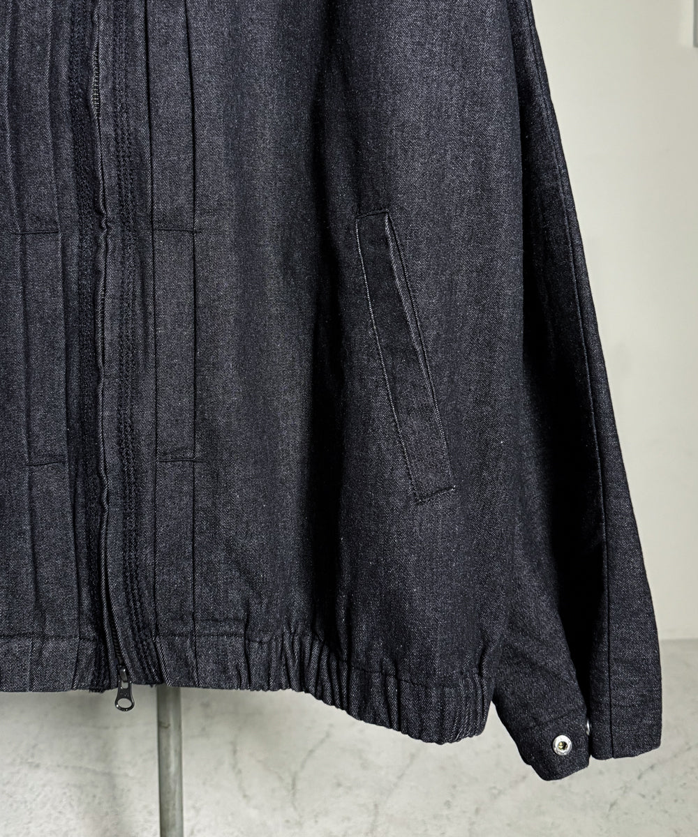 ヴィンテージウェアを彷彿とさせるフロントのプリーツディテールが印象的なデニムジャケット。